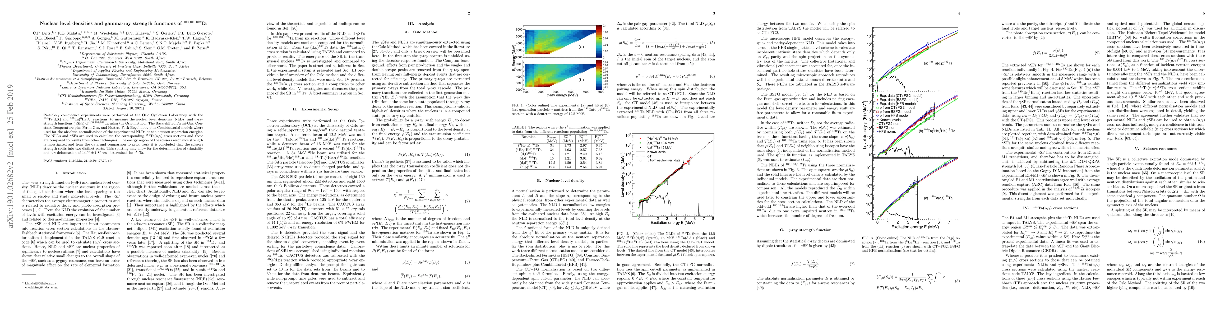 Particle-$\gamma$ coincidence experiments were performed at the Oslo Cyclotron Laboratory with the $^{181}$Ta(d,X) and $^{181}$Ta($^{3}$He,X) reactions, to measure the nuclear level densities (NLDs) and $\gamma$-ray strength functions ($\gamma$SFs) of $^{180, 181, 182}$Ta using the Oslo method. The Back-shifted Fermi-Gas, Constant Temperature plus Fermi Gas, and Hartree-Fock-Bogoliubov plus Combinatorial models where used for the absolute normalisations of the experimental NLDs at the neutron separation energies. The NLDs and $\gamma$SFs are used to calculate the corresponding $^{181}$Ta(n,$\gamma$) cross sections and these are compared to results from other techniques. The energy region of the scissors resonance strength is investigated and from the data and comparison to prior work it is concluded that the scissors strength splits into two distinct parts. This splitting may allow for the determination of triaxiality and a $\gamma$ deformation of $14.9^{\circ} \pm 1.8^{\circ}$ was determined for $^{181}$Ta.