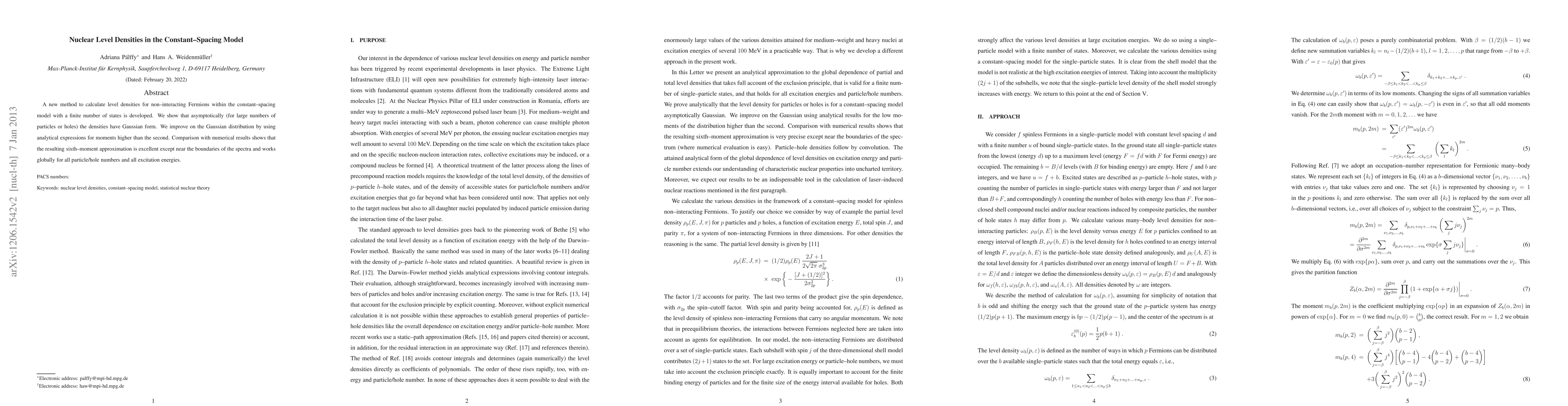 This paper introduces a novel method for calculating nuclear level densities in the constant-spacing model, demonstrating that these densities exhibit Gaussian behavior asymptotically. The authors enhance the Gaussian approximation using analytical expressions for higher moments, showing that the sixth-moment approximation aligns well with numerical results globally, except near the spectrum boundaries.