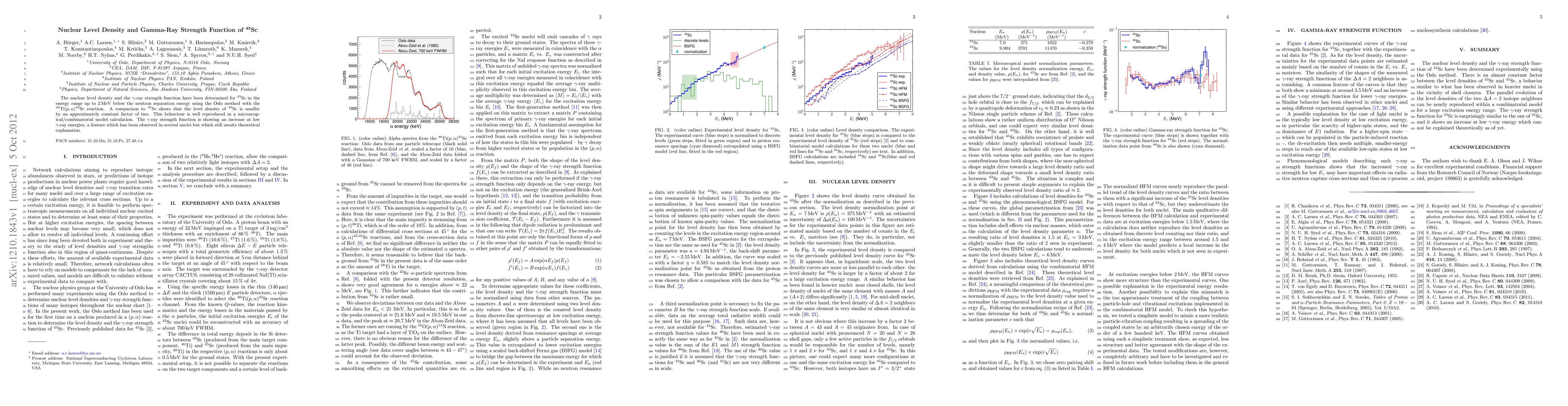 The research determines nuclear level density and gamma-ray strength function for 43Sc using the Oslo method with 46Ti(p,alpha)43Sc reaction. It finds 43Sc's level density is roughly half of 45Sc's, supported by microscopic/combinatorial model calculations. The gamma-ray strength function exhibits an unexplained increase at low energies, observed in other nuclei too.