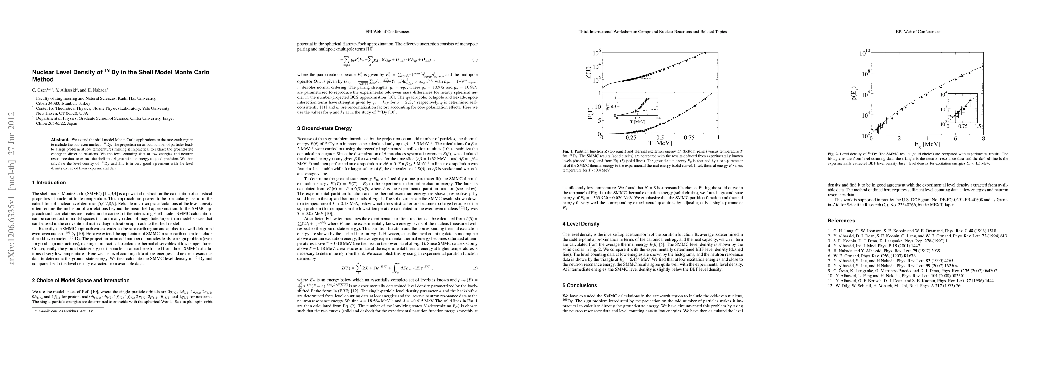 We extend the shell-model Monte Carlo applications to the rare-earth region to include the odd-even nucleus ${}^{161}$Dy. The projection on an odd number of particles leads to a sign problem at low temperatures making it impractical to extract the ground-state energy in direct calculations. We use level counting data at low energies and neutron resonance data to extract the shell model ground-state energy to good precision. We then calculate the level density of ${}^{161}$Dy and find it in very good agreement with the level density extracted from experimental data.