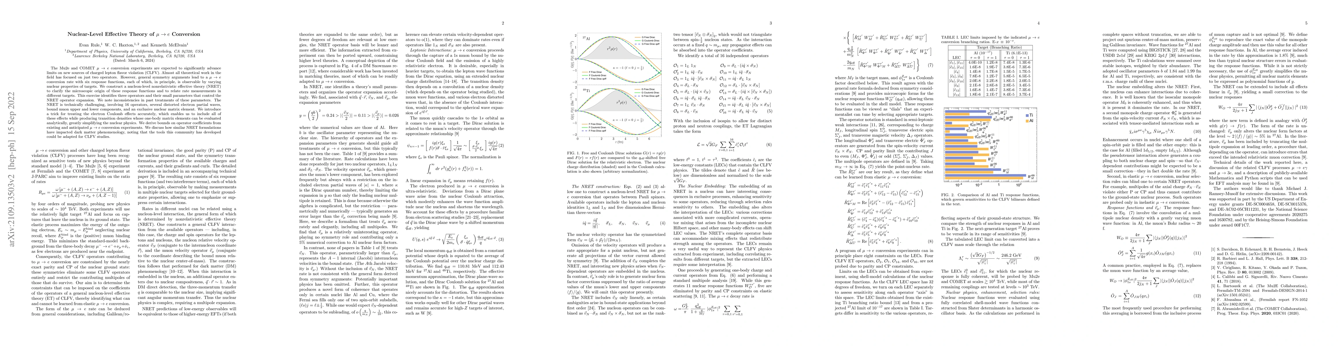 The Mu2e and COMET $\mu \rightarrow e$ conversion experiments are expected to significantly advance limits on new sources of charged lepton flavor violation (CLFV). Almost all theoretical work in the field has focused on just two operators. However, general symmetry arguments lead to a $\mu \rightarrow e$ conversion rate with six response functions, each of which, in principle, is observable by varying nuclear properties of targets. We construct a nucleon-level nonrelativistic effective theory (NRET) to clarify the microscopic origin of these response functions and to relate rate measurements in different targets. This exercise identifies three operators and their small parameters that control the NRET operator expansion. We note inconsistencies in past treatments of these parameters. The NRET is technically challenging, involving 16 operators, several distorted electron partial waves, bound muon upper and lower components, and an exclusive nuclear matrix element. We introduce a trick for treating the electron Coulomb effects accurately, which enables us to include all of these effects while producing transition densities whose one-body matrix elements can be evaluated analytically, greatly simplifying the nuclear physics. We derive bounds on operator coefficients from existing and anticipated $\mu \rightarrow e$ conversion experiments. We discuss how similar NRET formulations have impacted dark matter phenomenology, noting that the tools this community has developed could be adapted for CLFV studies.
