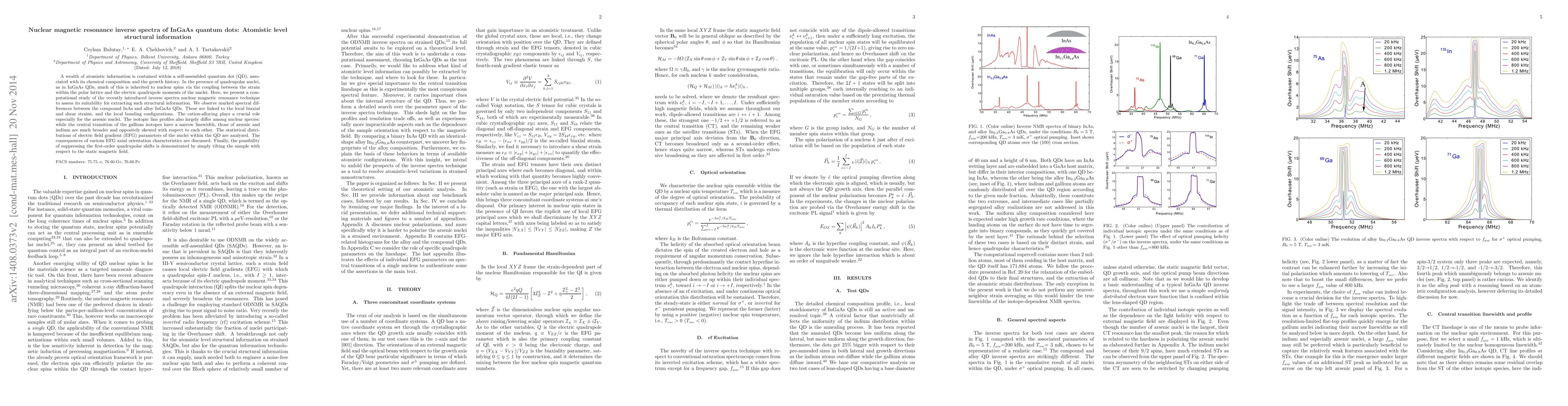 This paper investigates the use of inverse nuclear magnetic resonance (NMR) spectra to extract atomistic structural information from InGaAs quantum dots, revealing differences in spectral profiles linked to local strains and bonding configurations. The study highlights the significant impact of cation-alloying on arsenic nuclei and the distinct isotopic line profiles, while also demonstrating how sample tilting can suppress first-order quadrupolar shifts.
