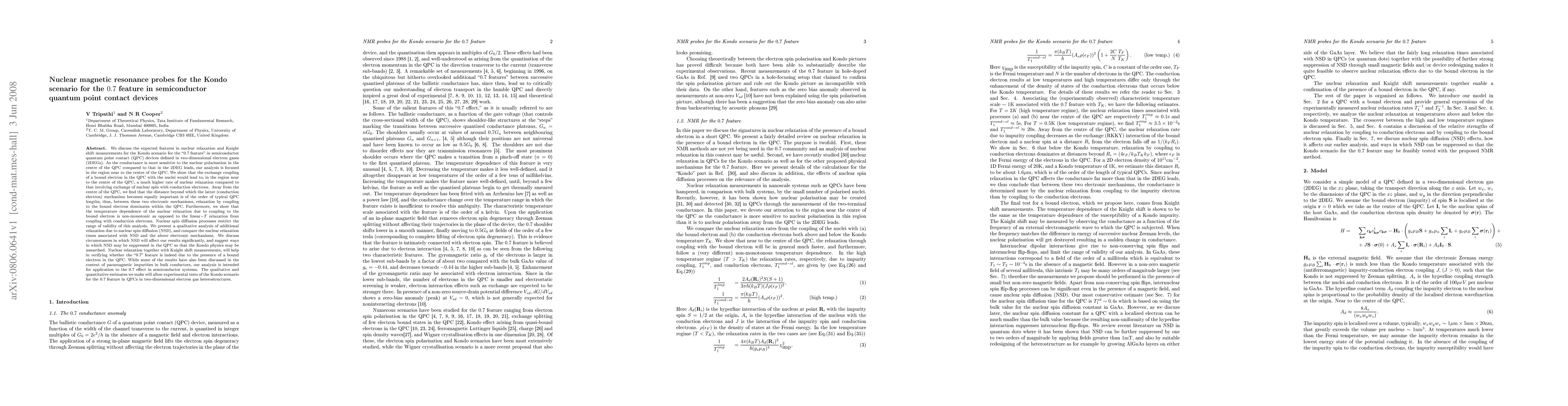 We propose a probe based on nuclear relaxation and Knight shift measurements for the Kondo scenario for the "0.7 feature" in semiconductor quantum point contact (QPC) devices. We show that the presence of a bound electron in the QPC would lead to a much higher rate of nuclear relaxation compared to nuclear relaxation through exchange of spin with conduction electrons. Furthermore, we show that the temperature dependence of this nuclear relaxation is very non-monotonic as opposed to the linear-T relaxation from coupling with conduction electrons. We present a qualitative analysis for the additional relaxation due to nuclear spin diffusion (NSD) and study the extent to which NSD affects the range of validity of our method. The conclusion is that nuclear relaxation, in combination with Knight shift measurements, can be used to verify whether the 0.7 feature is indeed due to the presence of a bound electron in the QPC.