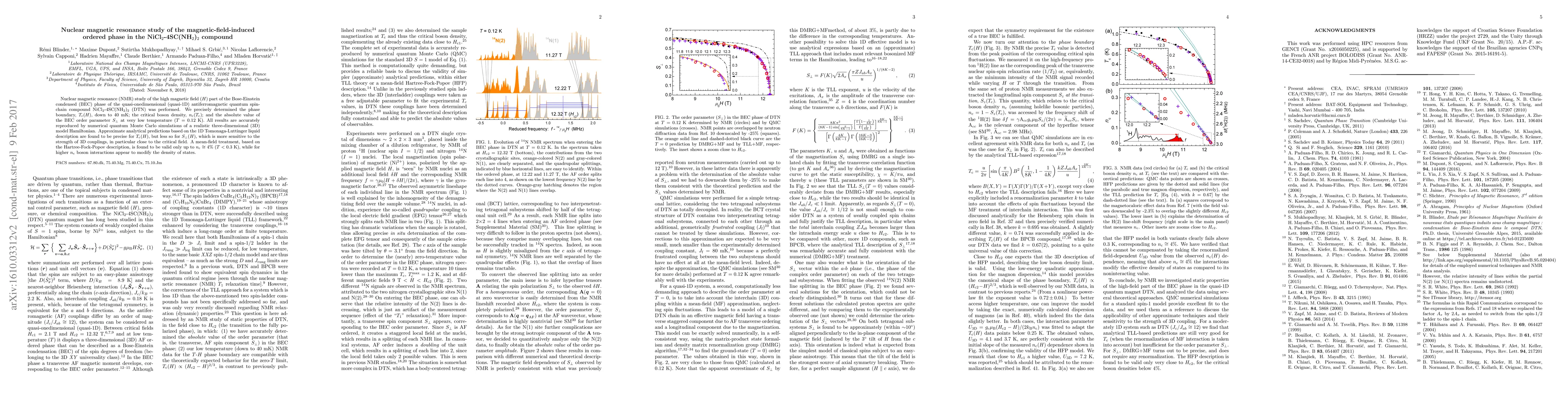Nuclear magnetic resonance (NMR) study of the high magnetic field (H) part of the Bose-Einstein condensed (BEC) phase of the quasi-onedimensional (quasi-1D) antiferromagnetic quantum spin-chain compound NiCl2-4SC(NH2)2 (DTN) was performed. We precisely determined the phase boundary, Tc(H), down to 40 mK; the critical boson density, n_c(Tc); and the absolute value of the BEC order parameter S_perp at very low temperature (T = 0.12 K). All results are accurately reproduced by numerical quantum Monte Carlo simulations of a realistic three-dimensional (3D) model Hamiltonian. Approximate analytical predictions based on the 1D Tomonaga-Luttinger liquid description are found to be precise for Tc(H), but less so for S_perp(H), which is more sensitive to the strength of 3D couplings, in particular close to the critical field. A mean-field treatment, based on the Hartree-Fock-Popov description, is found to be valid only up to n_c = 4% (T < 0.3 K), while for higher n_c boson interactions appear to modify the density of states.