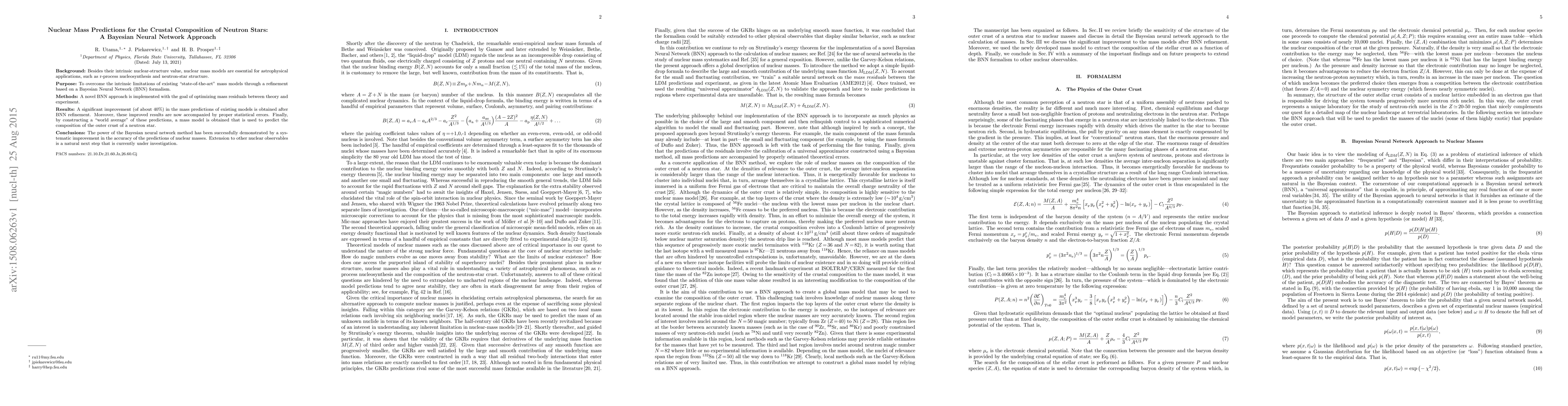 This paper proposes a Bayesian Neural Network (BNN) approach to refine nuclear mass models, achieving a 40% improvement in mass predictions and providing statistical errors. The refined model is used to predict the crustal composition of neutron stars, demonstrating the method's effectiveness for astrophysical applications.