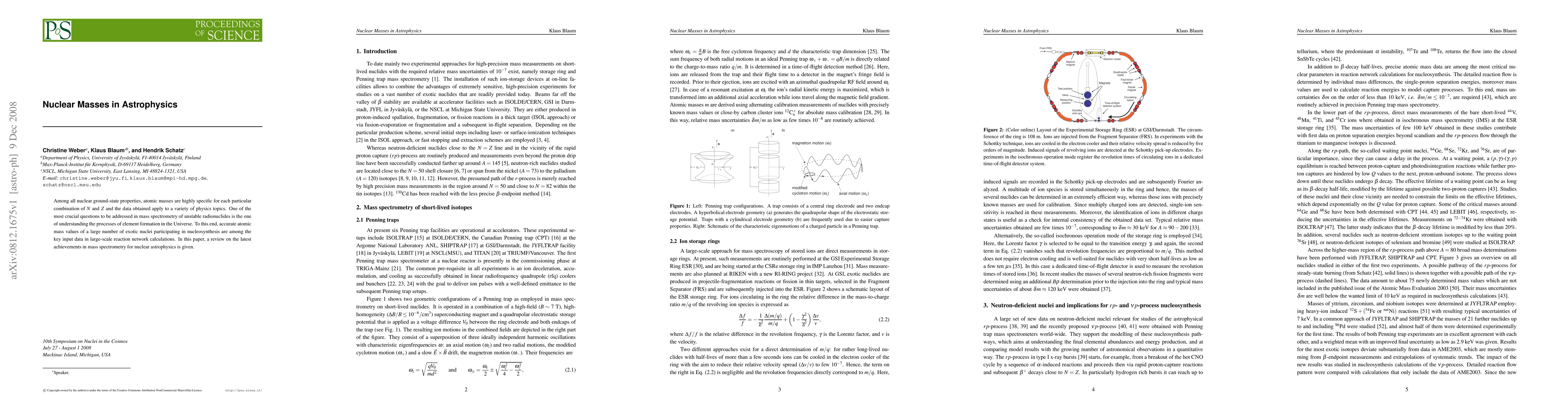 This paper reviews recent advancements in mass spectrometry for determining atomic masses of unstable radionuclides, which are essential for understanding nucleosynthesis processes and element formation in the universe. Accurate mass values of exotic nuclei play a crucial role in large-scale reaction network calculations in nuclear astrophysics.