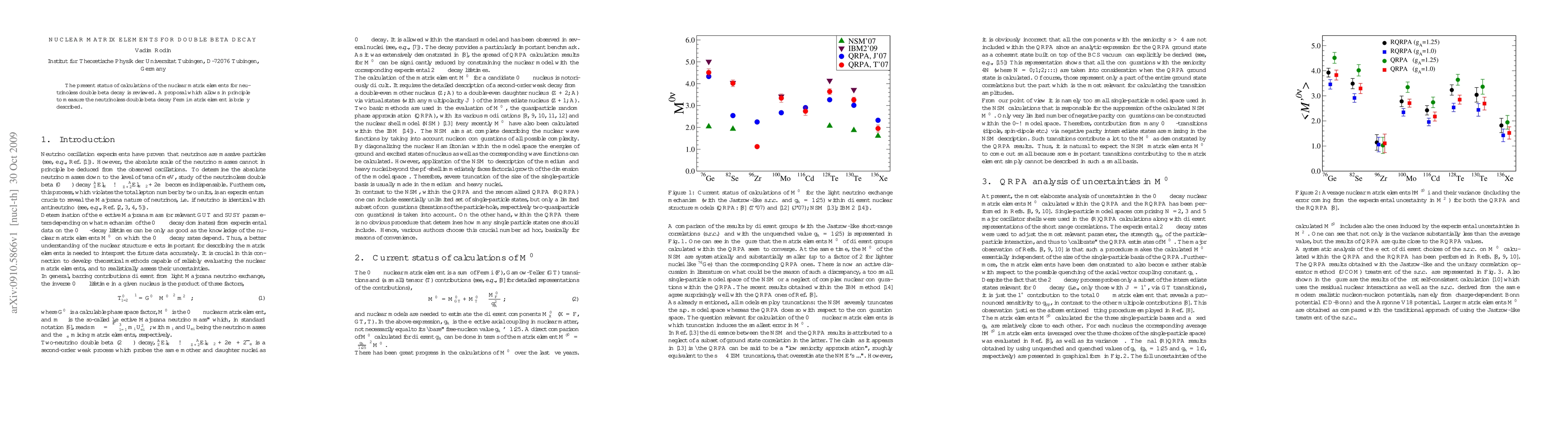 The present status of calculations of the nuclear matrix elements for neutrinoless double beta decay is reviewed. A proposal which allows in principle to measure the neutrinoless double beta decay Fermi matrix element is briefly described.