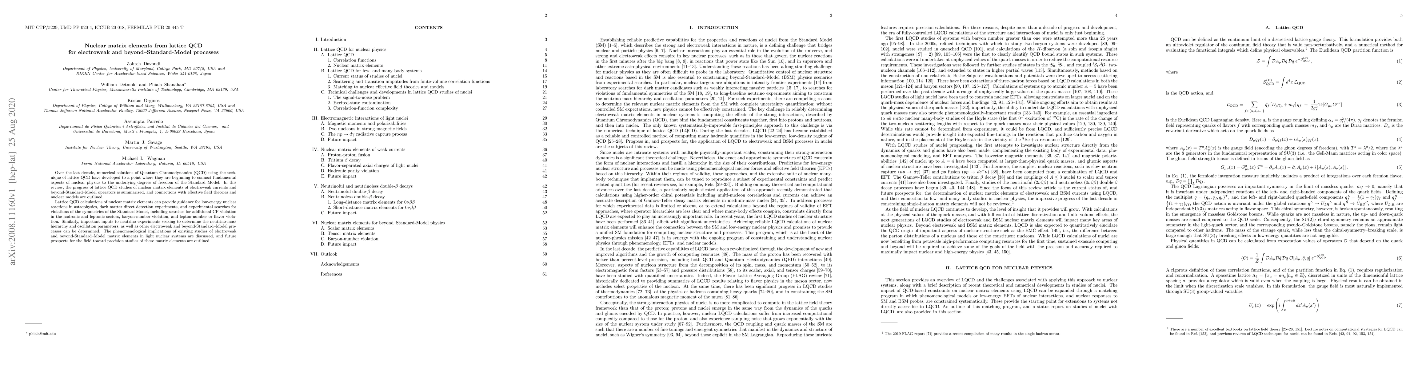 This paper reviews advancements in lattice QCD for calculating nuclear matrix elements related to electroweak and beyond-Standard-Model processes, highlighting their significance for astrophysics, dark matter detection, and searches for new physics phenomena. Future prospects for precision studies are also discussed.