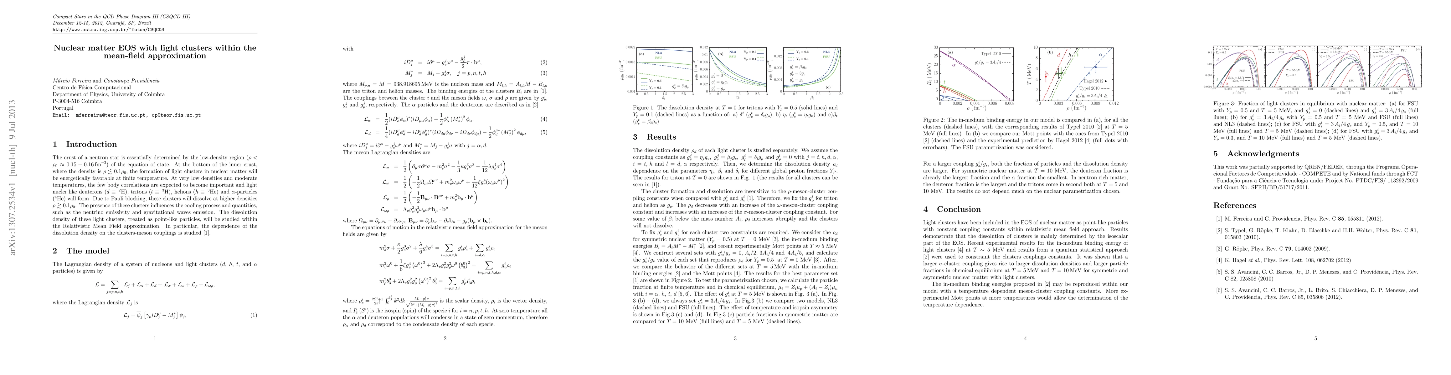 This paper investigates the equation of state (EOS) of nuclear matter in neutron star crusts, focusing on the formation and dissolution of light clusters like deuterons and alpha particles at low densities and finite temperatures. It uses the Relativistic Mean Field approximation to study how these clusters' dissolution density depends on their meson couplings.