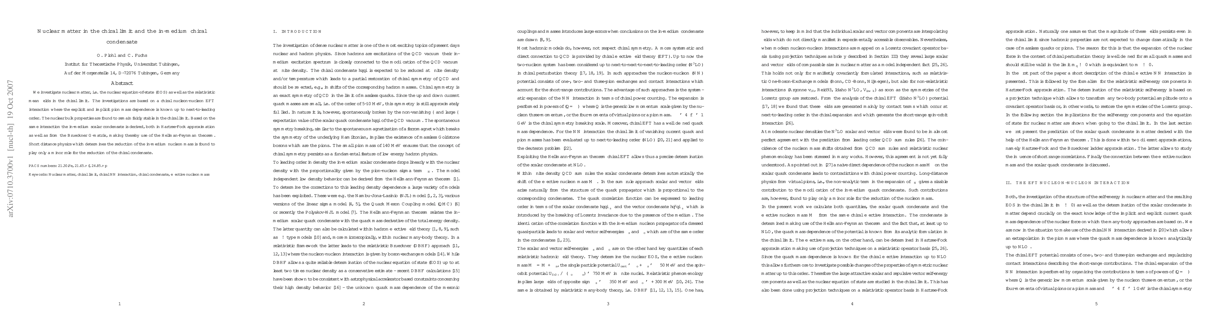 We investigate nuclear matter, i.e. the nuclear equation-of-state (EOS) as well as the relativistic mean fields in the chiral limit. The investigations are based on a chiral nucleon-nucleon EFT interaction where the explicit and implicit pion mass dependence is known up to next-to-leading order. The nuclear bulk properties are found to remain fairly stable in the chiral limit. Based on the same interaction the in-medium scalar condensate is derived, both in Hartree-Fock approximation as well as from the Brueckner G-matrix, making thereby use of the Hellman-Feynman theorem. Short distance physics which determines the reduction of the in-medium nucleon mass is found to play only a minor role for the reduction of the chiral condensate.