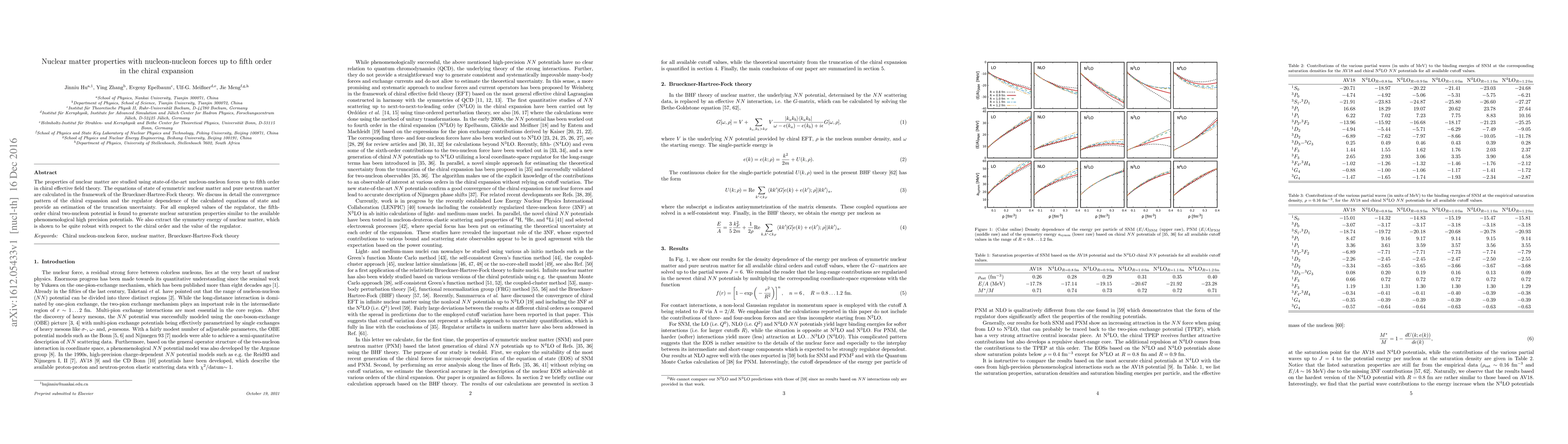 This paper investigates nuclear matter properties using nucleon-nucleon forces up to fifth order in chiral effective field theory, finding that the fifth-order potential generates nuclear saturation properties comparable to high-precision phenomenological potentials. The symmetry energy of nuclear matter is shown to be robust against the chiral order and regulator choice.