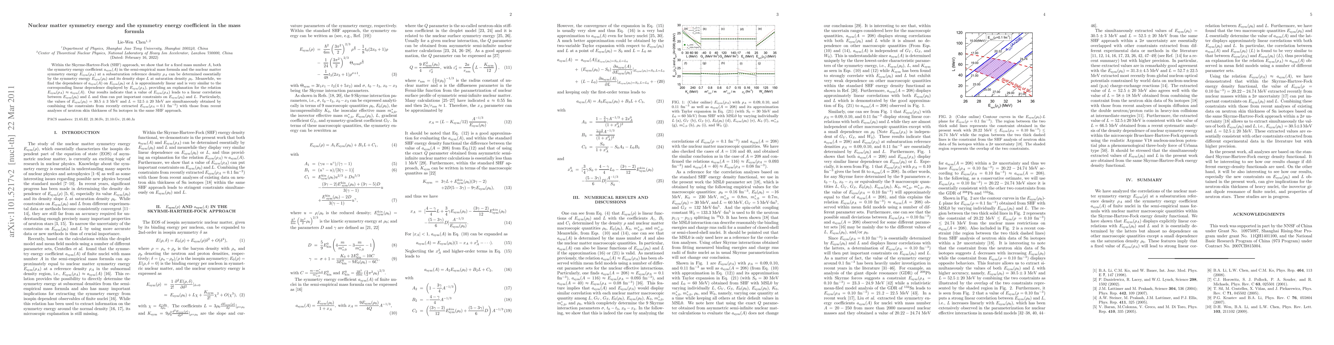 Within the Skyrme-Hartree-Fock (SHF) approach, we show that for a fixed mass number A, both the symmetry energy coefficient a_{sym}(A) in the semi-empirical mass formula and the nuclear matter symmetry energy E_{sym}(\rho_A) at a subsaturation reference density rho_A can be determined essentially by the symmetry energy E_{sym}(rho_0) and its density slope L at saturation density rho_0. Meanwhile, we find the dependence of a_{sym}(A) on E_{sym}(rho_0) or L is approximately linear and is very similar to the corresponding linear dependence displayed by E_{sym}(\rho_A), providing an explanation for the relation E_{sym}(\rho_A) \approx a_{sym}(A). Our results indicate that a value of E_{sym}(\rho_A) leads to a linear correlation between E_{sym}(rho_0) and L and thus can put important constraints on E_{sym}(rho_0) and L. Particularly, the values of E_{sym}(rho_0)= 30.5 +- 3 MeV and L= 52.5 +- 20 MeV are simultaneously obtained by combining the constraints from recently extracted E_{sym}(\rho_A=0.1 fm^{-3}) with those from recent analyses of neutron skin thickness of Sn isotopes in the same SHF approach.