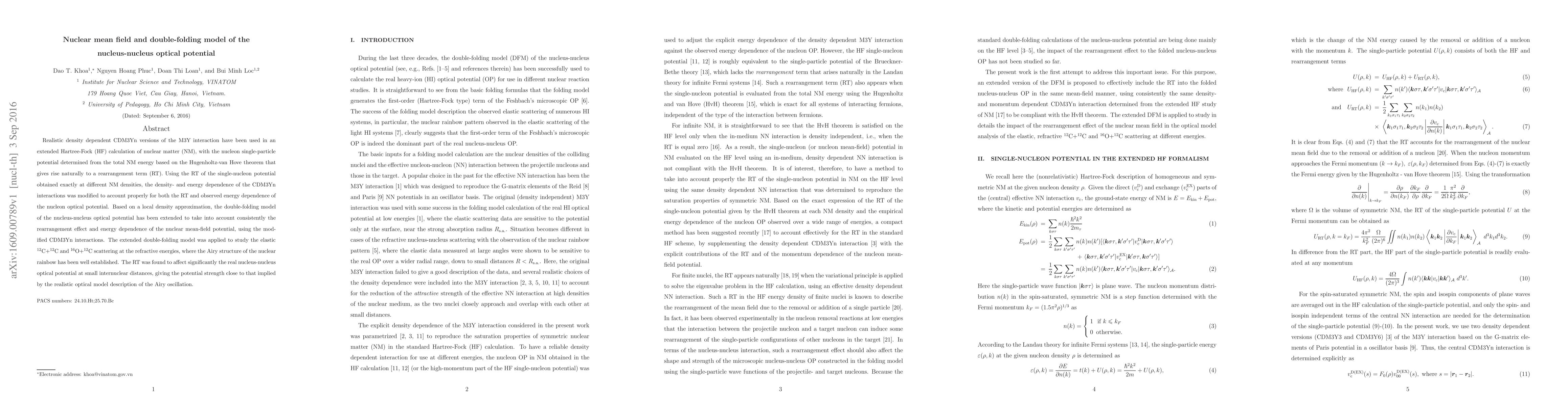 Realistic density dependent CDM3Yn versions of the M3Y interaction have been used in an extended Hartree-Fock (HF) calculation of nuclear matter (NM), with the nucleon single-particle potential determined from the total NM energy based on the Hugenholtz-van Hove theorem that gives rise naturally to a rearrangement term (RT). Using the RT of the single-nucleon potential obtained exactly at different NM densities, the density- and energy dependence of the CDM3Yn interactions was modified to account properly for both the RT and observed energy dependence of the nucleon optical potential. Based on a local density approximation, the double-folding model of the nucleus-nucleus optical potential has been extended to take into account consistently the rearrangement effect and energy dependence of the nuclear mean-field potential, using the modified CDM3Yn interactions. The extended double-folding model was applied to study the elastic $^{12}$C+$^{12}$C and $^{16}$O+$^{12}$C scattering at the refractive energies, where the Airy structure of the nuclear rainbow has been well established. The RT was found to affect significantly the real nucleus-nucleus optical potential at small internuclear distances, giving the potential strength close to that implied by the realistic optical model description of the Airy oscillation.