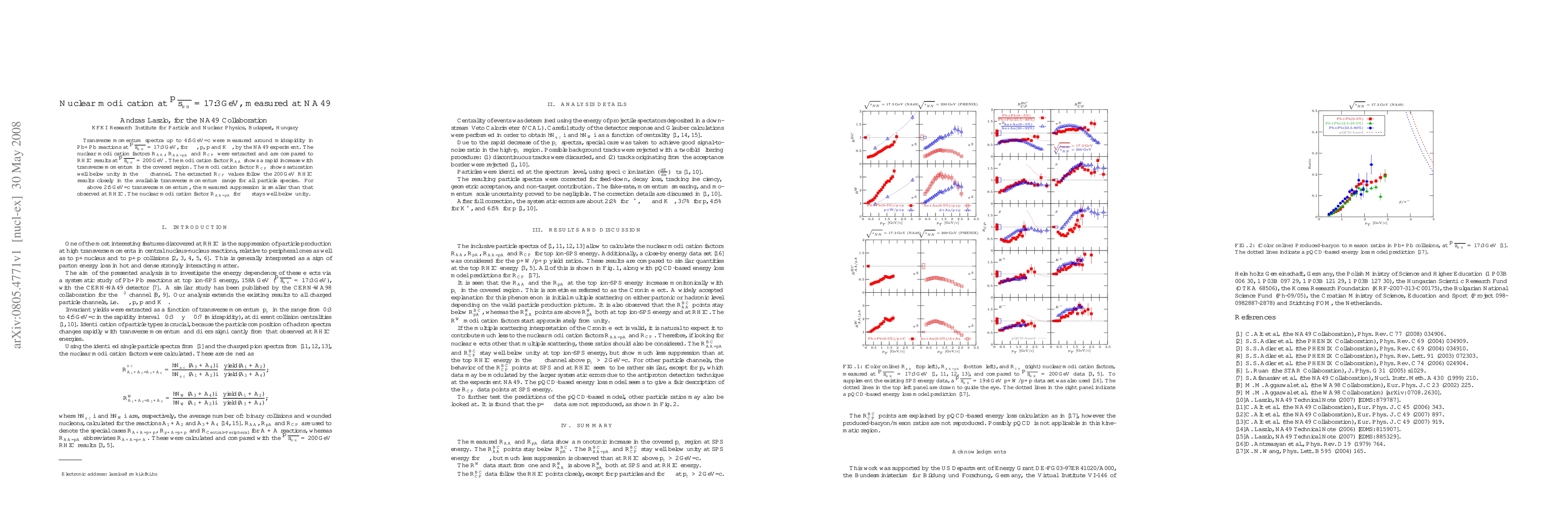Researchers measured nuclear modification factors in Pb+Pb collisions at sqrt{s_{NN}}=17.3 GeV, finding that R_{AA} increases with transverse momentum and R_{CP} shows saturation below unity, similar to results from RHIC at sqrt{s_{NN}}=200 GeV.