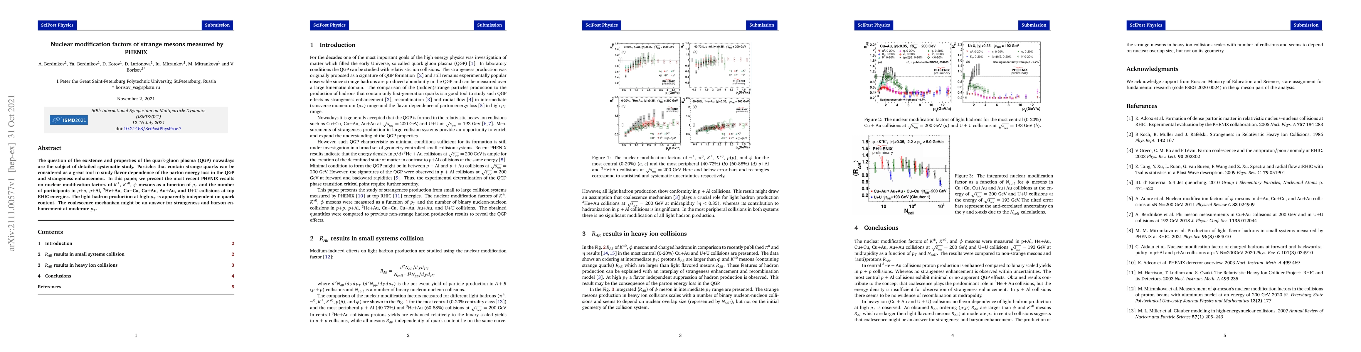 The question of the existence and properties of the quark-gluon plasma (QGP) nowadays are the subject of detailed systematic study. Particles that contain strange quarks can be considered as a great tool to study flavor dependence of the parton energy loss in the QGP and strangeness enhancement. In this paper, we present the most recent PHENIX results on nuclear modification factors of $K^{\pm}$, $K^{*0}$, $\phi$ mesons as a function of $p_T$ and the number of participants in $p$+$p$, $p$+Al, $^3$He+Au, Cu+Cu, Cu+Au, Au+Au, and U+U collisions at top RHIC energies. The light hadron production at high-$p_T$ is apparently independent on quark content. The coalescence mechanism might be an answer for strangeness and baryon enhancement at moderate $p_T$.