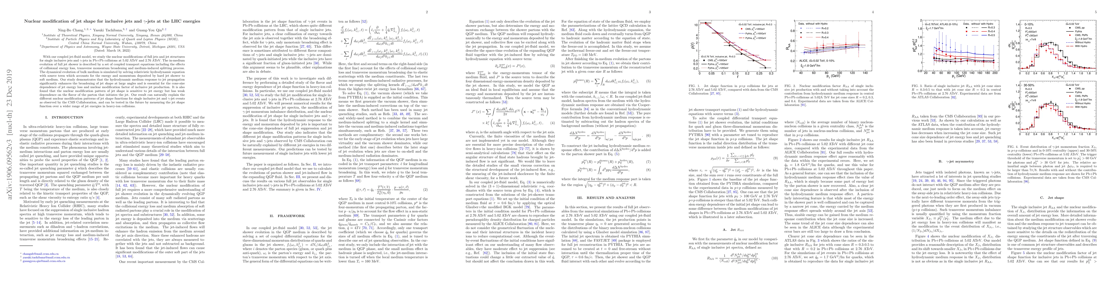 The study uses a coupled jet-fluid model to analyze nuclear modifications of full jets and jet structures in Pb+Pb collisions at 5.02 ATeV and 2.76 ATeV. Key findings indicate that hydrodynamic medium response significantly enhances jet shape broadening at large angles, essential for understanding jet energy loss and nuclear modification factors. The model successfully explains the observed differences in jet shape functions for inclusive jets and photon-initiated jets, providing testable predictions for future heavy-ion collision measurements.