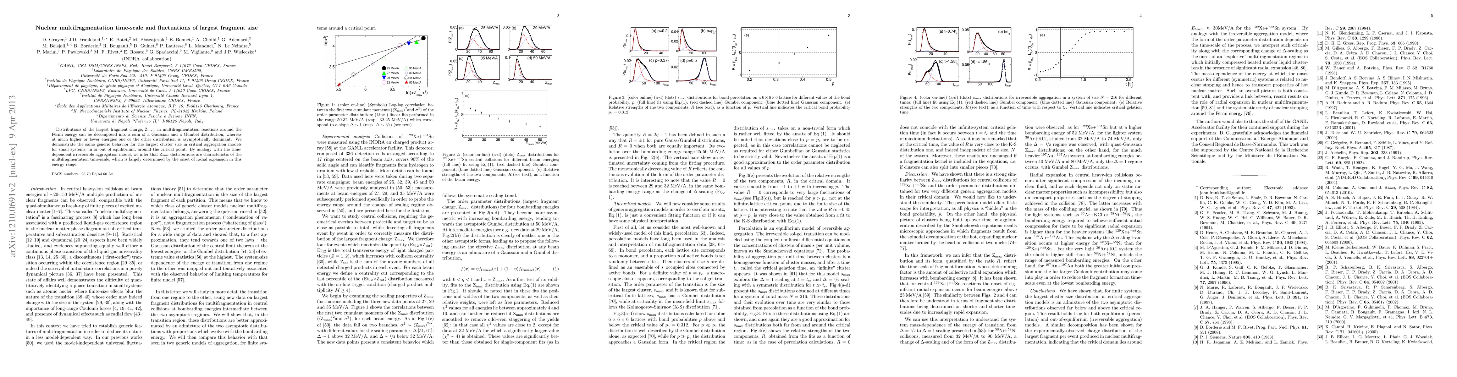 This paper investigates the time-scale of nuclear multifragmentation and fluctuations in the largest fragment size, revealing that Zmax distributions follow a Gaussian-Gumbel decomposition around Fermi energy. The study also finds similar behavior in critical aggregation models, suggesting that these distributions are indicative of the multifragmentation time-scale, primarily influenced by radial expansion.