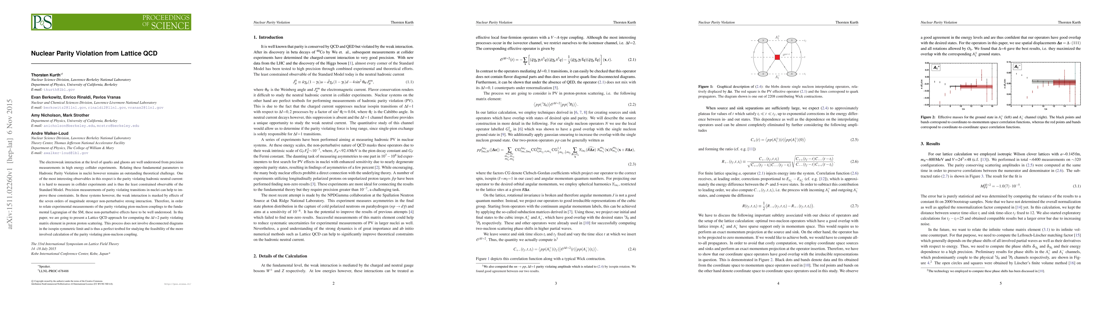 The electroweak interaction at the level of quarks and gluons are well understood from precision measurements in high energy collider experiments. Relating these fundamental parameters to Hadronic Parity Violation in nuclei however remains an outstanding theoretical challenge. One of the most interesting observables in this respect is the parity violating hadronic neutral current: it is hard to measure in collider experiments and is thus the least constrained observable of the Standard Model. Precision measurements of parity violating transitions in nuclei can help to improve these constraints. In these systems however, the weak interaction is masked by effects of the seven orders of magnitude stronger non-perturbative strong interaction. Therefore, in order to relate experimental measurements of the parity violating pion-nucleon couplings to the fundamental Lagrangian of the SM, these non-perturbative effects have to be well understood. In this paper, we are going to present a Lattice QCD approach for computing the $\Delta I{=}2$ parity violating matrix element in proton proton scattering. This process does not involve disconnected diagrams in the isospin symmetric limit and is thus a perfect testbed for studying the feasibility of the more involved calculation of the parity violating pion-nucleon coupling.