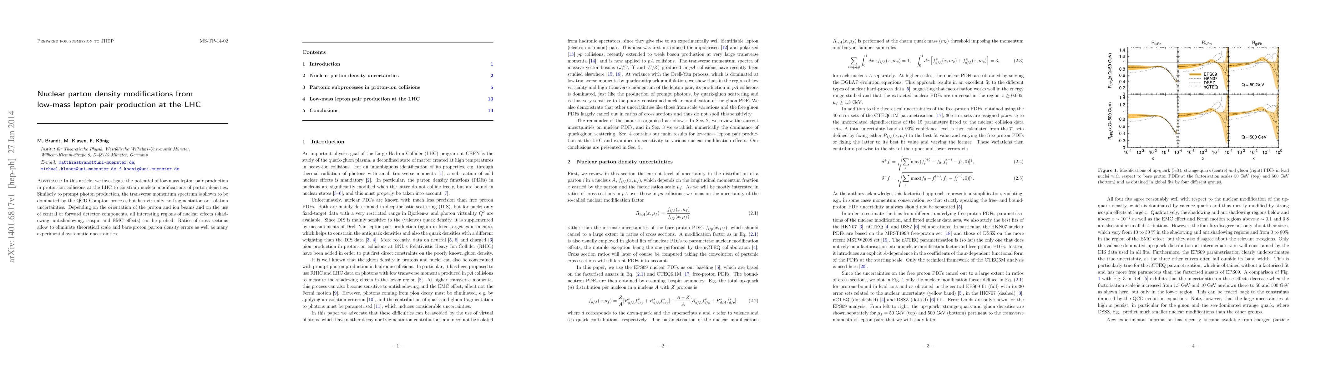 This paper explores how low-mass lepton pair production in proton-ion collisions at the LHC can reveal nuclear modifications of parton densities, with the transverse momentum spectrum primarily driven by the QCD Compton process. Ratios of cross sections help to mitigate theoretical and experimental uncertainties, enabling probing of various nuclear effects.