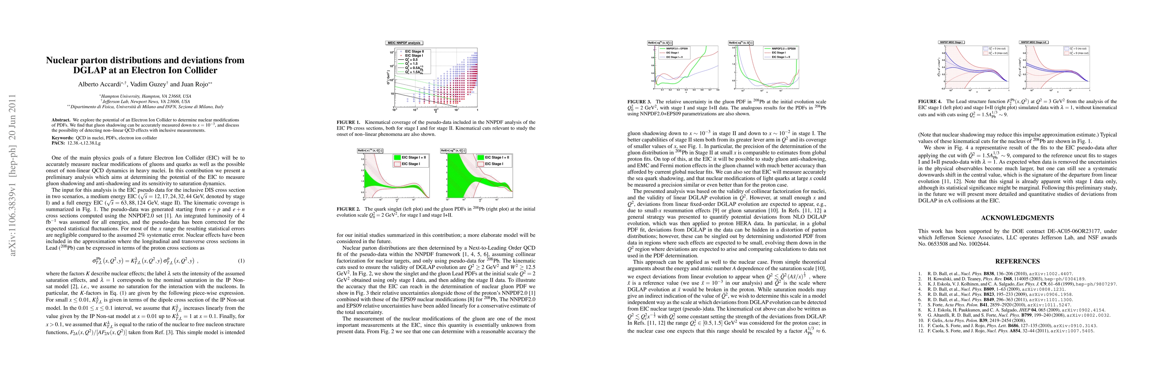We explore the potential of an Electron Ion Collider to determine nuclear modifications of PDFs. We find that gluon shadowing can be accurately measured down to x=0.001, and discuss the possibility of detecting non--linear QCD effects with inclusive measurements.