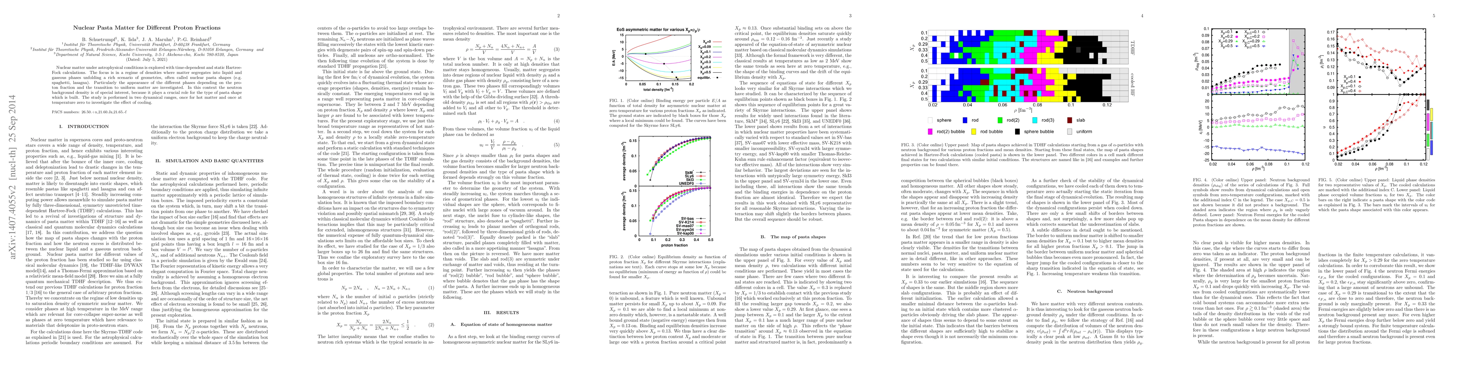 Nuclear matter under astrophysical conditions is explored with time-dependent and static Hartree-Fock calculations. The focus is in a regime of densities where matter segregates into liquid and gaseous phases unfolding a rich scenario of geometries, often called nuclear pasta shapes (e.g. spaghetti, lasagna). Particularly the appearance of the different phases depending on the proton fraction and the transition to uniform matter are investigated. In this context the neutron background density is of special interest, because it plays a crucial role for the type of pasta shape which is built. The study is performed in two dynamical ranges, one for hot matter and one at temperature zero to investigate the effect of cooling.