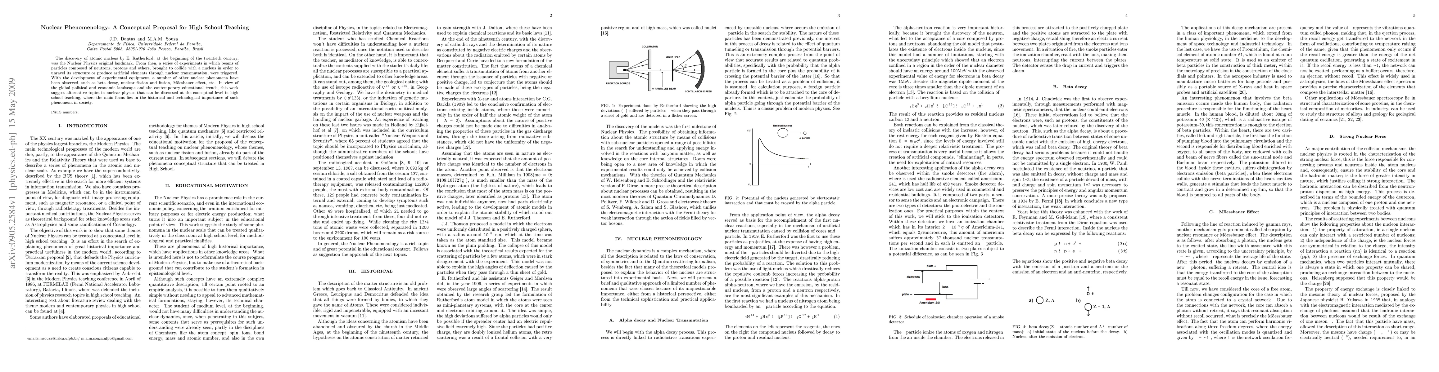 The discovery of atomic nucleus by E. Rutherford, at the beginning of the twentieth century, was the Nuclear Physics original landmark. From then, a series of experiments in which beams of particles composed of neutrons, protons and others, brought to collide with a nucleus in order to unravel its structure or produce artificial elements through nuclear transmutation, were triggered. With the development of experimental equipment, a number of other nuclear phenomena have been observed, such as beta decay, nuclear fission and fusion, M\"oesbauer effect, etc. In view of the global political and economic landscape and the contemporary educational trends, this work suggest alternative topics in nuclear physics that can be discussed at the conceptual level in high school teaching, where the main focus lies in the historical and technological importance of such phenomena in society.
