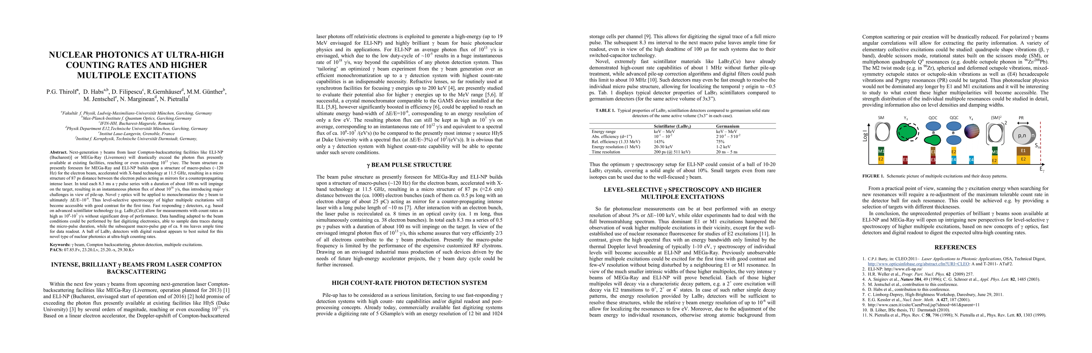 Next-generation gamma beams beams from laser Compton-backscattering facilities like ELI-NP (Bucharest)] or MEGa-Ray (Livermore) will drastically exceed the photon flux presently available at existing facilities, reaching or even exceeding 10^13 gamma/sec. The beam structure as presently foreseen for MEGa-Ray and ELI-NP builds upon a structure of macro-pulses (~120 Hz) for the electron beam, accelerated with X-band technology at 11.5 GHz, resulting in a micro structure of 87 ps distance between the electron pulses acting as mirrors for a counterpropagating intense laser. In total each 8.3 ms a gamma pulse series with a duration of about 100 ns will impinge on the target, resulting in an instantaneous photon flux of about 10^18 gamma/s, thus introducing major challenges in view of pile-up. Novel gamma optics will be applied to monochromatize the gamma beam to ultimately Delta E/E~10^-6. Thus level-selective spectroscopy of higher multipole excitations will become accessible with good contrast for the first time. Fast responding gamma detectors, e.g. based on advanced scintillator technology (e.g. LaBr3(Ce)) allow for measurements with count rates as high as 10^6-10^7 gamma/s without significant drop of performance. Data handling adapted to the beam conditions could be performed by fast digitizing electronics, able to sample data traces during the micro-pulse duration, while the subsequent macro-pulse gap of ca. 8 ms leaves ample time for data readout. A ball of LaBr3 detectors with digital readout appears to best suited for this novel type of nuclear photonics at ultra-high counting rates.