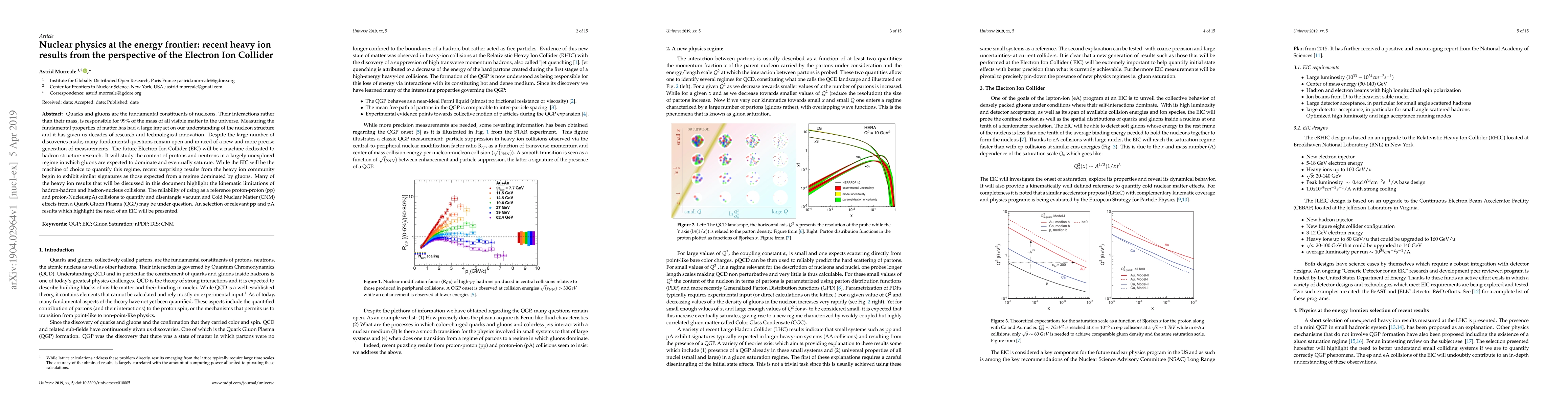 Recent heavy ion results reveal surprising similarities to a regime dominated by gluons, highlighting limitations in current proton-proton and nucleus collisions for studying quark properties. The Electron Ion Collider is proposed as the future solution to quantify this regime and advance our understanding of matter.
