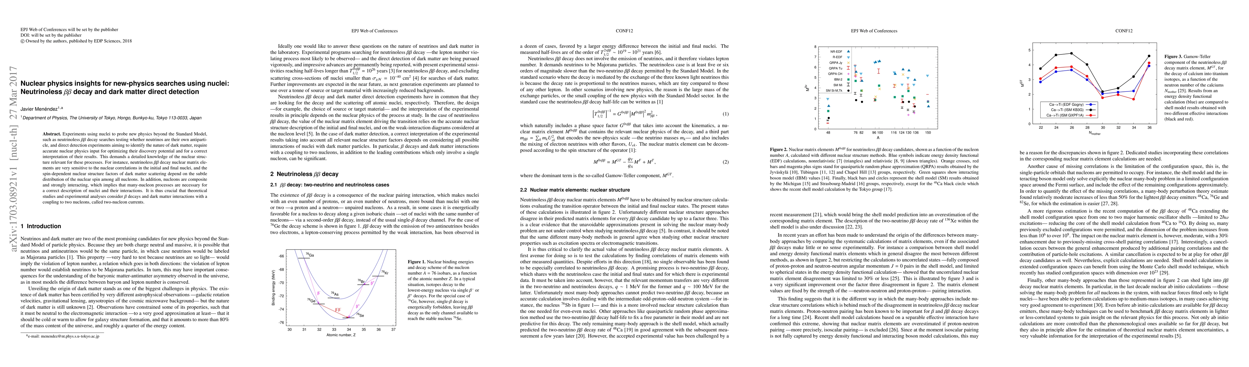 This paper discusses the importance of nuclear physics insights in experiments probing new physics beyond the Standard Model, such as neutrinoless $\beta\beta$ decay and dark matter detection. Accurate nuclear structure knowledge is essential for optimizing these searches and correctly interpreting their results, especially considering two-nucleon current interactions.