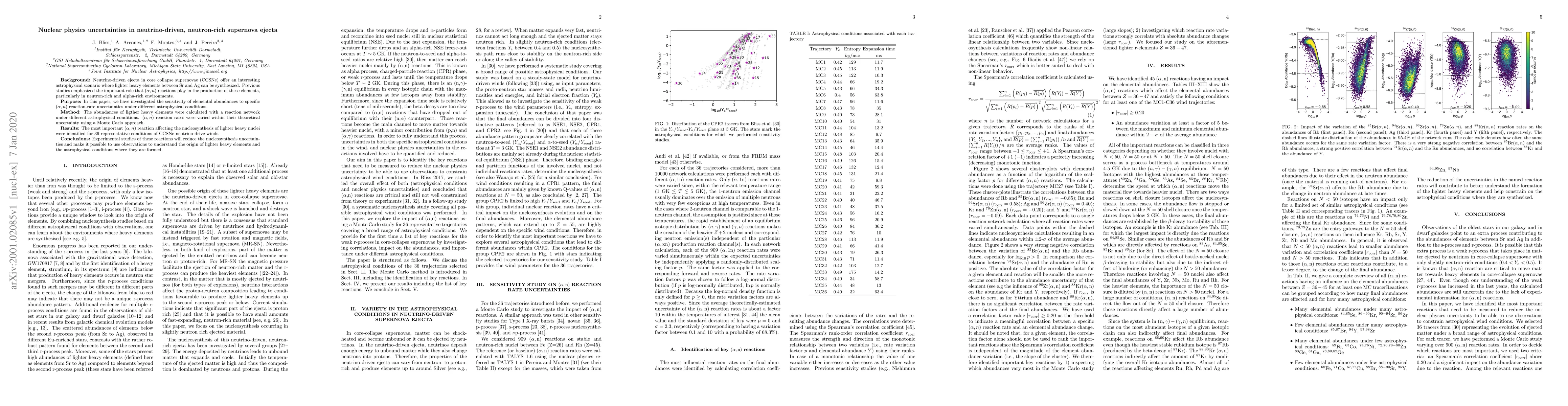 This paper investigates how uncertainties in ($\alpha,n$) reaction rates affect the synthesis of lighter heavy elements in neutrino-driven supernova ejecta. Through a Monte Carlo study, it identifies key reactions influencing elemental abundances, emphasizing the need for experimental studies to reduce nucleosynthesis uncertainties and better understand astrophysical conditions.