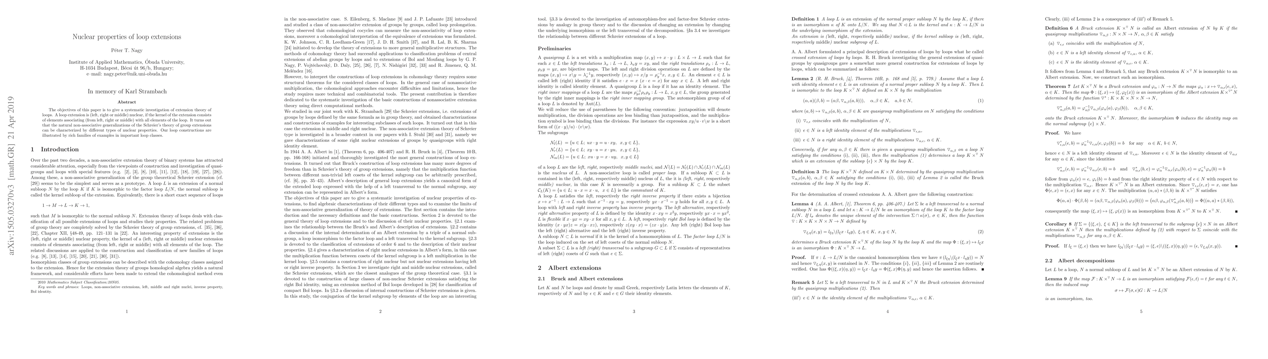 The paper introduces a systematic approach to characterize nuclear properties of loop extensions using non-associative generalizations of Schreier's theory for group extensions.