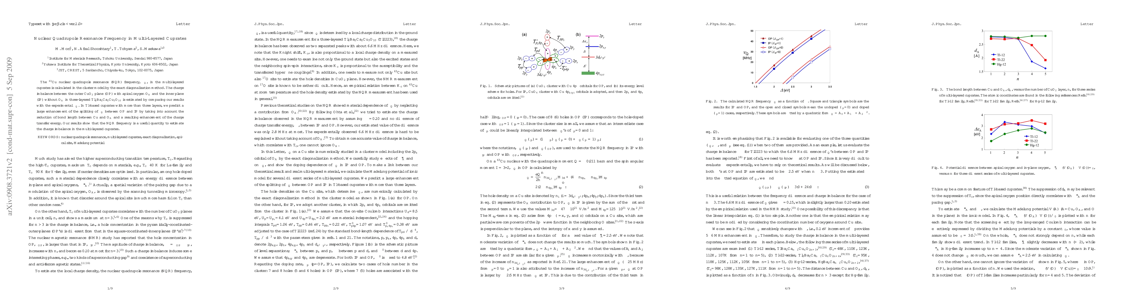 Researchers used a cluster model to calculate the nuclear quadrupole resonance frequency in multi-layered cuprates, finding it can estimate charge imbalance between outer and inner planes.