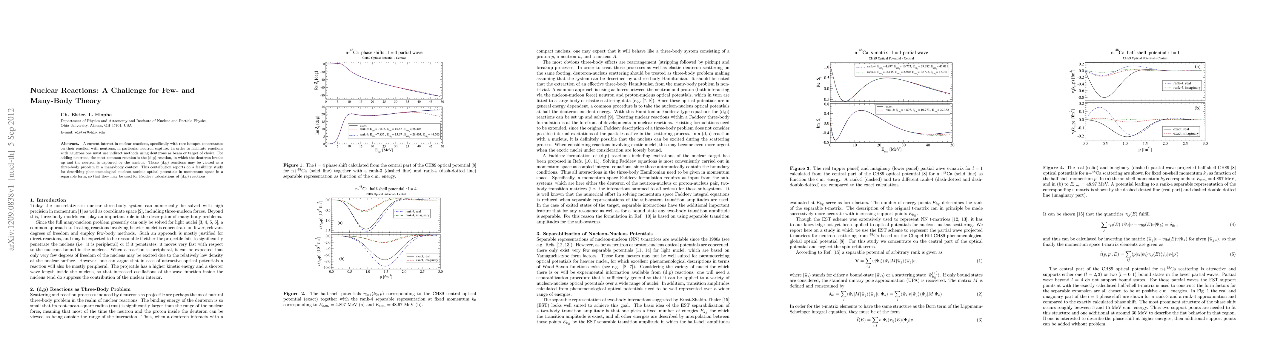 A current interest in nuclear reactions, specifically with rare isotopes concentrates on their reaction with neutrons, in particular neutron capture. In order to facilitate reactions with neutrons one must use indirect methods using deuterons as beam or target of choice. For adding neutrons, the most common reaction is the (d,p) reaction, in which the deuteron breaks up and the neutron is captured by the nucleus. Those (d,p) reactions may be viewed as a three-body problem in a many-body context. This contribution reports on a feasibility study for describing phenomenological nucleon-nucleus optical potentials in momentum space in a separable form, so that they may be used for Faddeev calculations of (d,p) reactions.