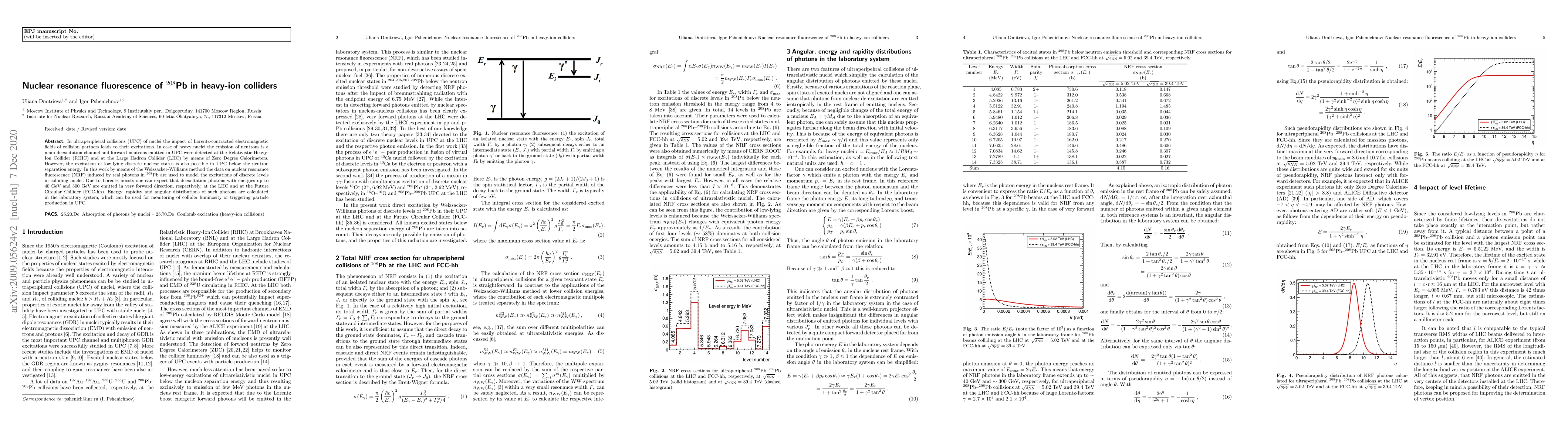 In ultraperipheral collisions (UPC) of nuclei the impact of Lorentz-contracted electromagnetic fields of collision partners leads to their excitations. In case of heavy nuclei the emission of neutrons is a main deexcitation channel and forward neutrons emitted in UPC were detected at the Relativistic Heavy-Ion Collider (RHIC) and at the Large Hadron Collider (LHC) by means of Zero Degree Calorimeters. However, the excitation of low-lying discrete nuclear states is also possible in UPC below the neutron separation energy. In this work by means of the Weizsacker-Williams method the data on nuclear resonance fluorescence (NRF) induced by real photons in 208 Pb are used to model the excitations of discrete levels in colliding nuclei. Due to Lorentz boosts one can expect that deexcitation photons with energies up to 40 GeV and 300 GeV are emitted in very forward direction, respectively, at the LHC and at the Future Circular Collider (FCC-hh). Energy, rapidity and angular distributions of such photons are calculated in the laboratory system, which can be used for monitoring of collider luminosity or triggering particle production in UPC.