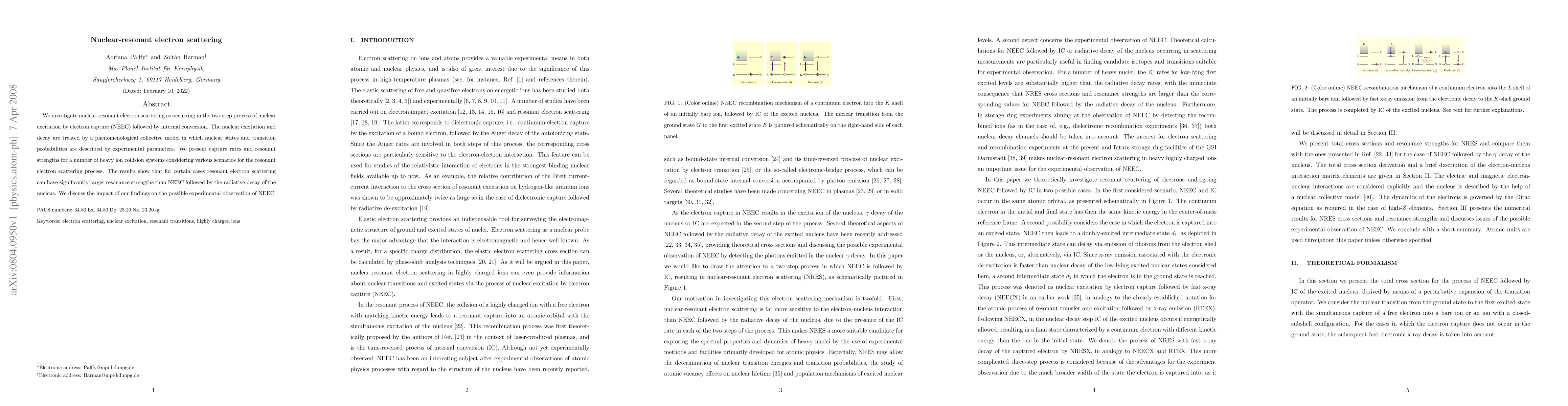 This paper investigates nuclear-resonant electron scattering via the NEEC process followed by internal conversion, using a collective model to describe nuclear states and transition probabilities. The study reveals that resonant electron scattering can have larger resonance strengths than traditional NEEC followed by radiative decay, impacting the potential experimental observation of NEEC.