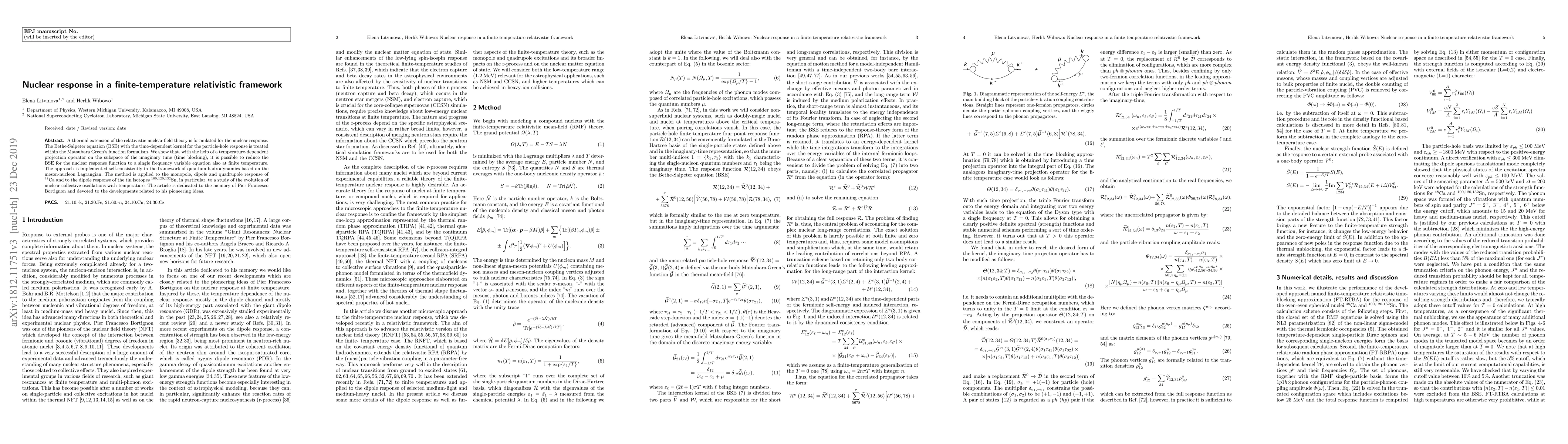 A thermal extension of the relativistic nuclear field theory is formulated for the nuclear response. The Bethe-Salpeter equation (BSE) with the time-dependent kernel for the particle-hole response is treated within the Matsubara Green's function formalism. We show that, with the help of a temperature-dependent projection operator on the subspace of the imaginary time (time blocking), it is possible to reduce the BSE for the nuclear response function to a single frequency variable equation also at finite temperature. The approach is implemented self-consistently in the framework of quantum hadrodynamics based on the meson-nucleon Lagrangian. The method is applied to the monopole, dipole and quadrupole response of $^{48}$Ca and to the dipole response of the tin isotopes $^{100,120,132}$Sn, in particular, to a study of the evolution of nuclear collective oscillations with temperature. The article is dedicated to the memory of Pier Francesco Bortignon and devoted to the developments related to his pioneering ideas.