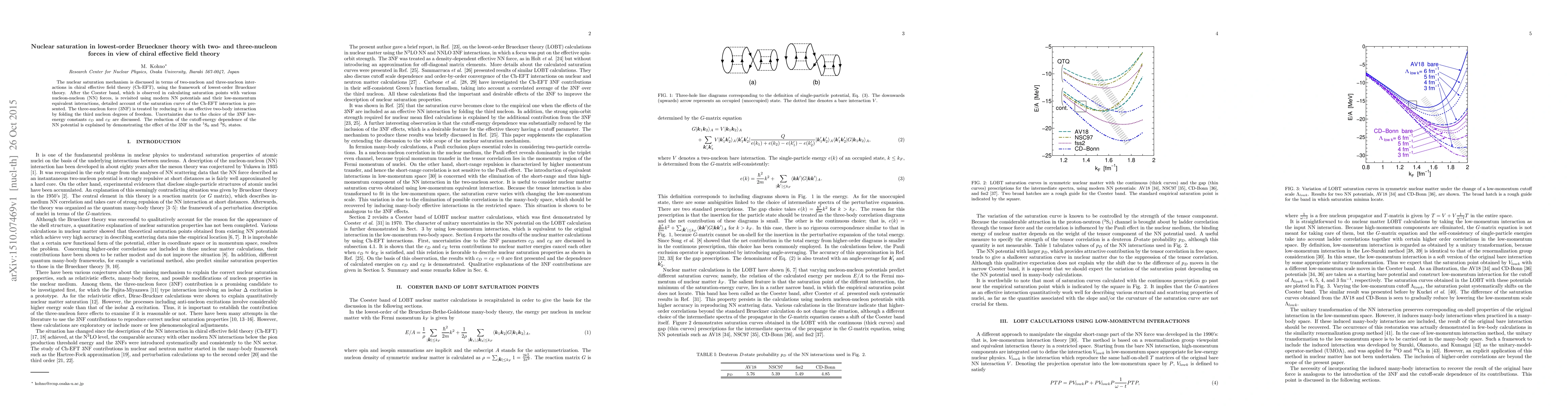 This paper explores nuclear saturation within the lowest-order Brueckner theory, incorporating two- and three-nucleon forces in chiral effective field theory. It examines the Coester band and the saturation curve, addressing uncertainties from three-nucleon force low-energy constants and the reduction of cutoff-energy dependence.