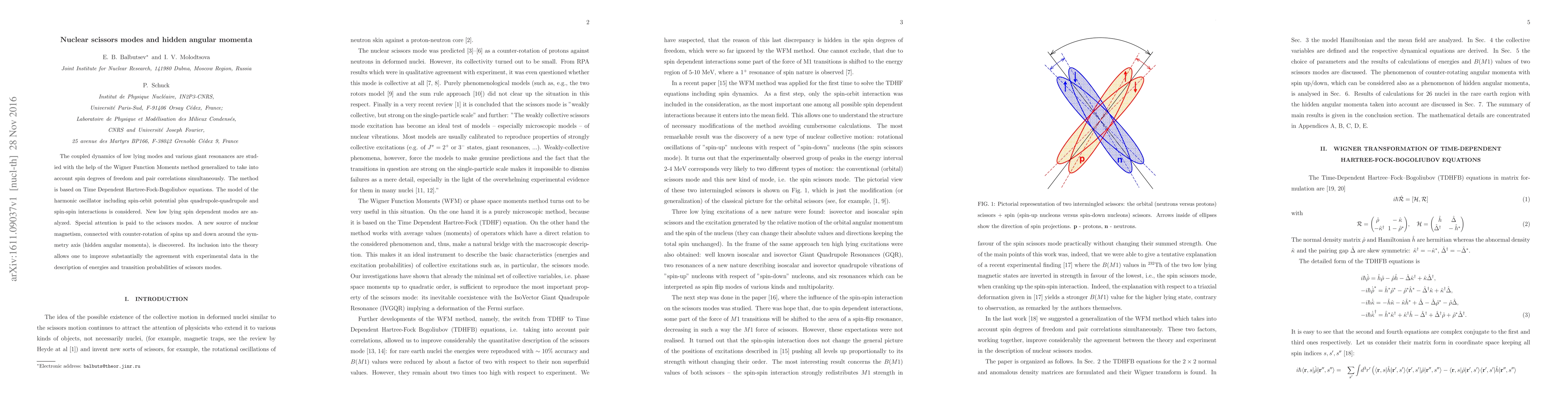 This paper studies low-lying nuclear modes and giant resonances using a generalized Wigner Function Moments method, revealing new spin-dependent scissors modes and identifying hidden angular momenta from spin counter-rotation, which significantly enhances the agreement with experimental data.