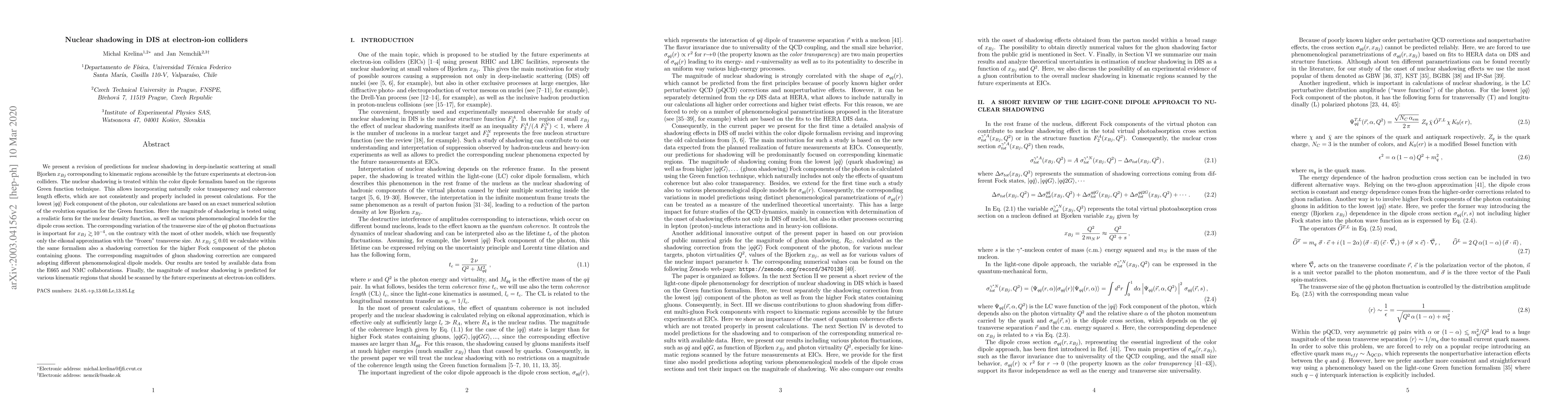 This paper revises predictions for nuclear shadowing in deep-inelastic scattering at small Bjorken $x_{Bj}$, employing the color dipole formalism and Green function technique to incorporate color transparency and coherence length effects. The results are compared with experimental data and predictions are made for future electron-ion collider experiments.