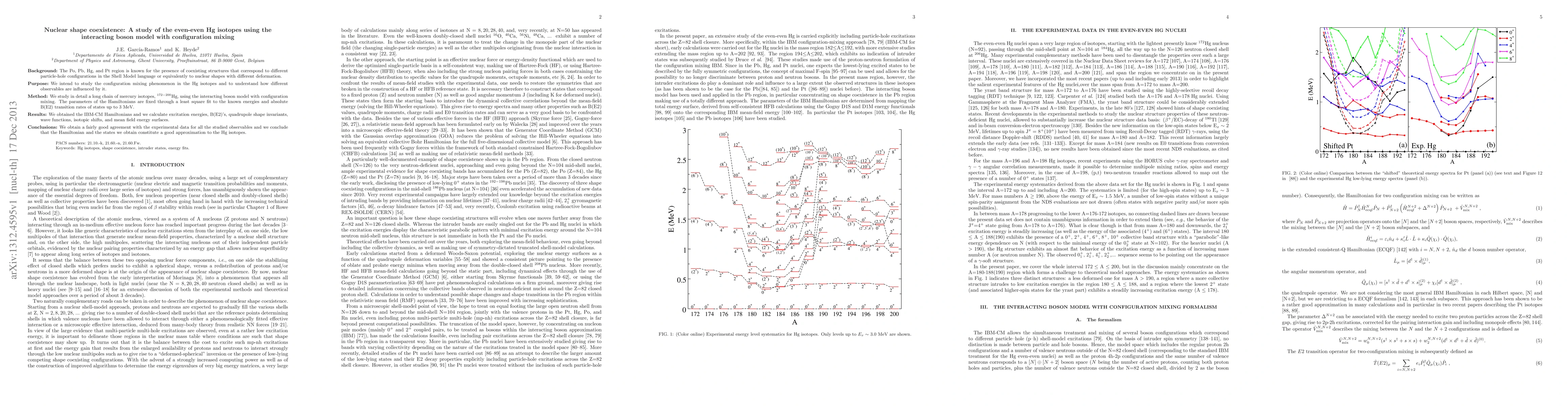Background: The Po, Pb, Hg, and Pt region is known for the presence of coexisting structures that correspond to different particle-hole configurations in the Shell Model language or equivalently to nuclear shapes with different deformation. Purpose: We intend to study the configuration mixing phenomenon in the Hg isotopes and to understand how different observables are influenced by it. Method: We study in detail a long chain of mercury isotopes, $^{172-200}$Hg, using the interacting boson model with configuration mixing. The parameters of the Hamiltonians are fixed through a least square fit to the known energies and absolute B(E2) transition rates of states up to $3$ MeV. Results: We obtained the IBM-CM Hamiltonians and we calculate excitation energies, B(E2)'s, quadrupole shape invariants, wave functions, isotopic shifts, and mean field energy surfaces. Conclusions: We obtain a fairly good agreement with the experimental data for all the studied observables and we conclude that the Hamiltonian and the states we obtain constitute a good approximation to the Hg isotopes.
