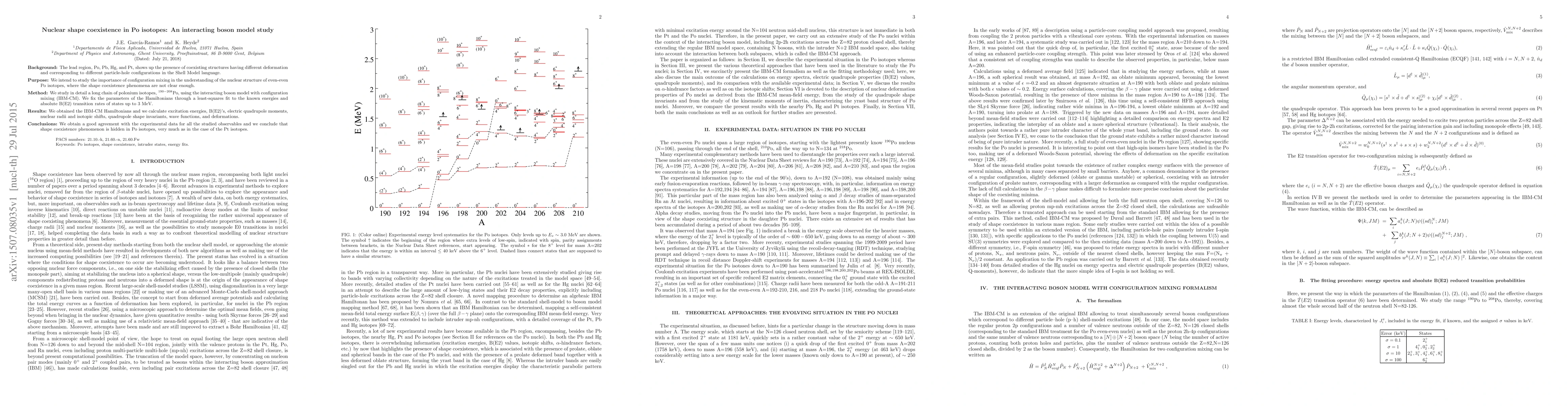 Background: The lead region, Po, Pb, Hg, and Pt, shows up the presence of coexisting structures having different deformation and corresponding to different particle-hole configurations in the Shell Model language. Purpose: We intend to study the importance of configuration mixing in the understanding of the nuclear structure of even-even Po isotopes, where the shape coexistence phenomena are not clear enough. Method: We study in detail a long chain of polonium isotopes, 190-208Po, using the interacting boson model with configuration mixing (IBM-CM). We fix the parameters of the Hamiltonians through a least-squares fit to the known energies and absolute B(E2) transition rates of states up to 3 MeV. Results: We obtained the IBM-CM Hamiltonians and we calculate excitation energies, B(E2)'s, electric quadrupole moments, nuclear radii and isotopic shifts, quadrupole shape invariants, wave functions, and deformations. Conclusions: We obtain a good agreement with the experimental data for all the studied observables and we conclude that shape coexistence phenomenon is hidden in Po isotopes, very much as in the case of the Pt isotopes.