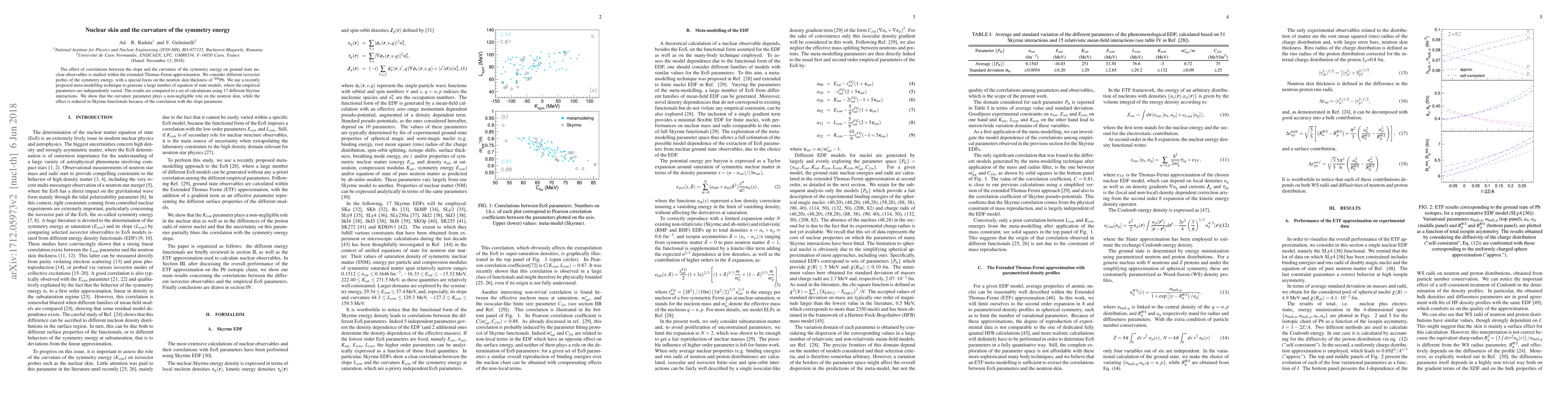 The effect of correlations between the slope and the curvature of the symmetry energy on ground state nuclear observables is studied within the extended Thomas-Fermi approximation. We consider different isovector probes of the symmetry energy, with a special focus on the skin of $^{208}{\rm Pb}$. We use a recently proposed meta-modelling technique to generate a large number of equation of state models, where the empirical parameters are independently varied. The results are compared to a set of calculations using 17 different Skyrme interactions. We show that the curvature parameter plays a non-negligible role on the neutron skin, while the effect is reduced in Skyrme functionals because of the correlation with the slope parameter.