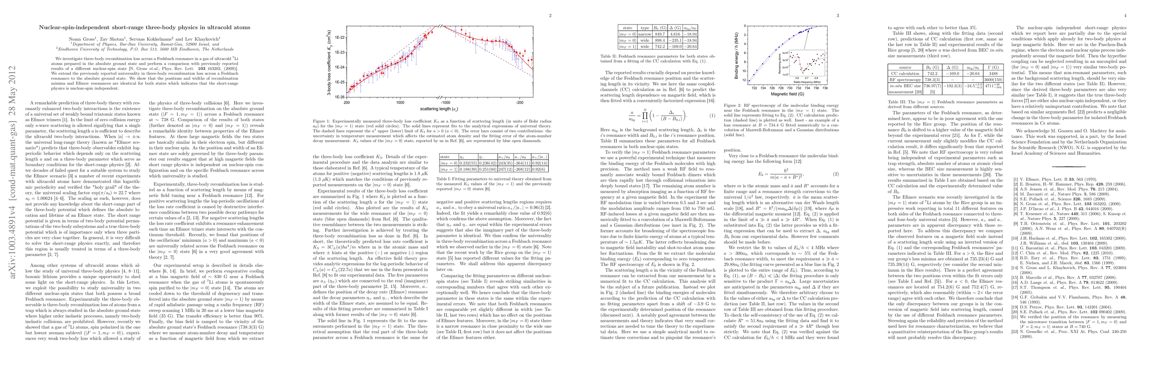 This study investigates three-body recombination loss in ultracold 7Li atoms across a Feshbach resonance, confirming the universality of recombination minima and Efimov resonances across different nuclear-spin states, indicating nuclear-spin-independent short-range three-body physics.