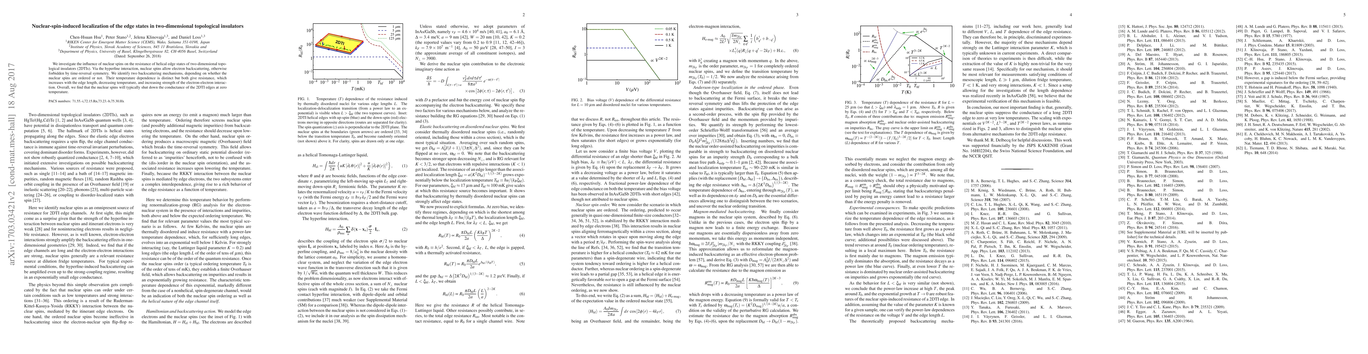 We investigate the influence of nuclear spins on the resistance of helical edge states of two-dimensional topological insulators (2DTIs). Via the hyperfine interaction, nuclear spins allow electron backscattering, otherwise forbidden by time reversal symmetry. We identify two backscattering mechanisms, depending on whether the nuclear spins are ordered or not. Their temperature dependence is distinct but both give resistance, which increases with the edge length, decreasing temperature, and increasing strength of the electron-electron interaction. Overall, we find that the nuclear spins will typically shut down the conductance of the 2DTI edges at zero temperature.