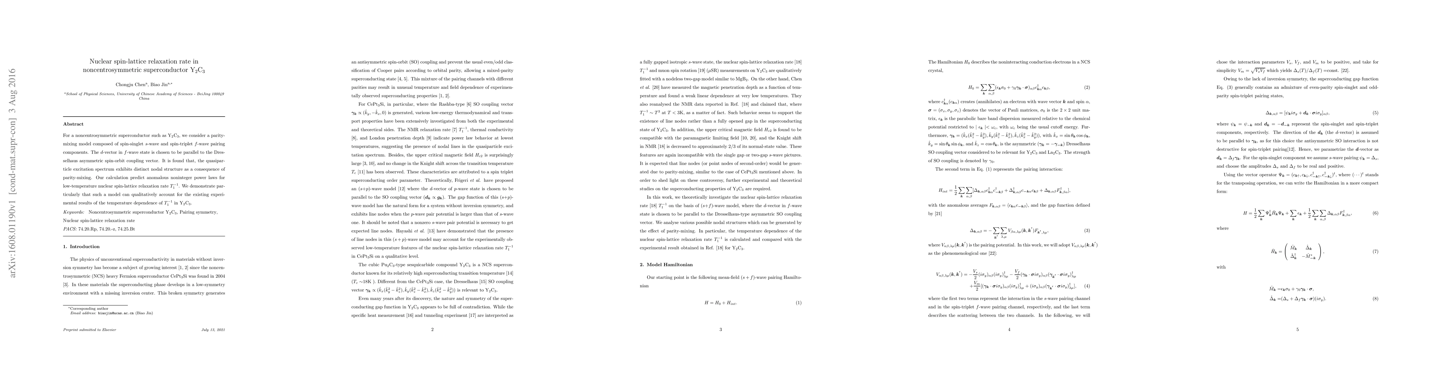 This paper investigates the nuclear spin-lattice relaxation rate $T_{1}^{-1}$ in the noncentrosymmetric superconductor Y$_2$C$_3$ using a parity-mixing model that combines spin-singlet and spin-triplet pairing components. The study predicts anomalous noninteger power laws for $T_{1}^{-1}$ at low temperatures, which can qualitatively account for experimental observations in Y$_2$C$_3$.