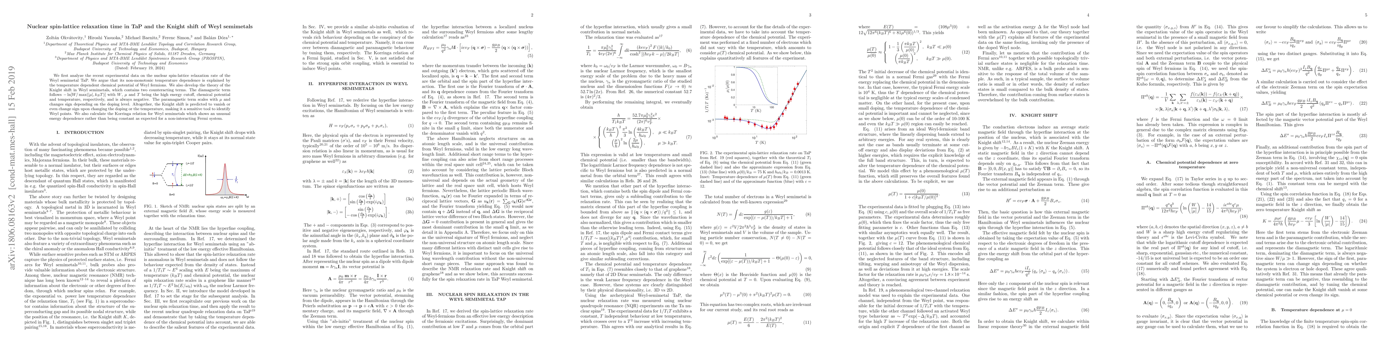 This paper analyzes the nuclear spin-lattice relaxation in TaP, attributing its non-monotonic temperature dependence to the Weyl fermions' chemical potential. It also develops a theory for the Knight shift in Weyl semimetals, revealing its sensitivity to doping and temperature changes.