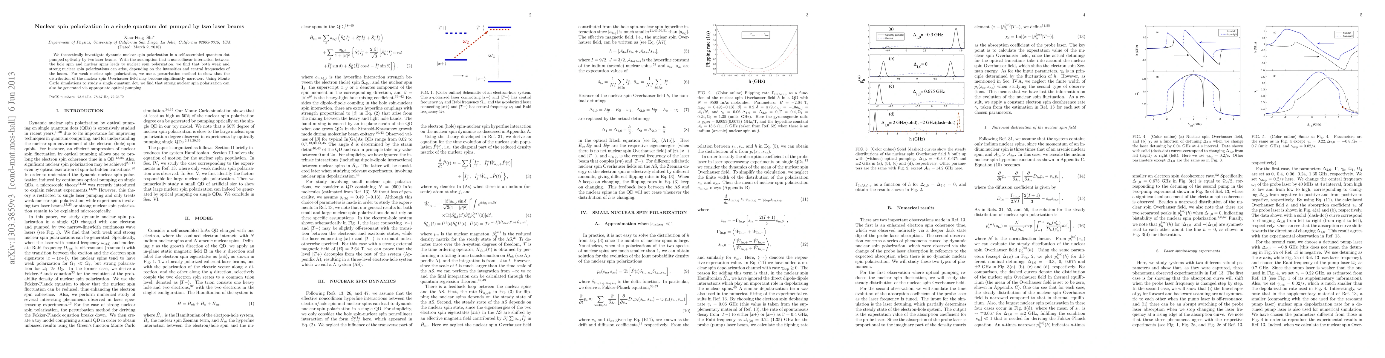 This research explores the dynamic nuclear spin polarization in a quantum dot optically pumped by two noncollinear laser beams, revealing that varying laser intensities and frequencies can induce both weak and strong nuclear spin polarizations. Weak polarization narrows the nuclear spin Overhauser field, while strong polarization results from optimal optical pumping.