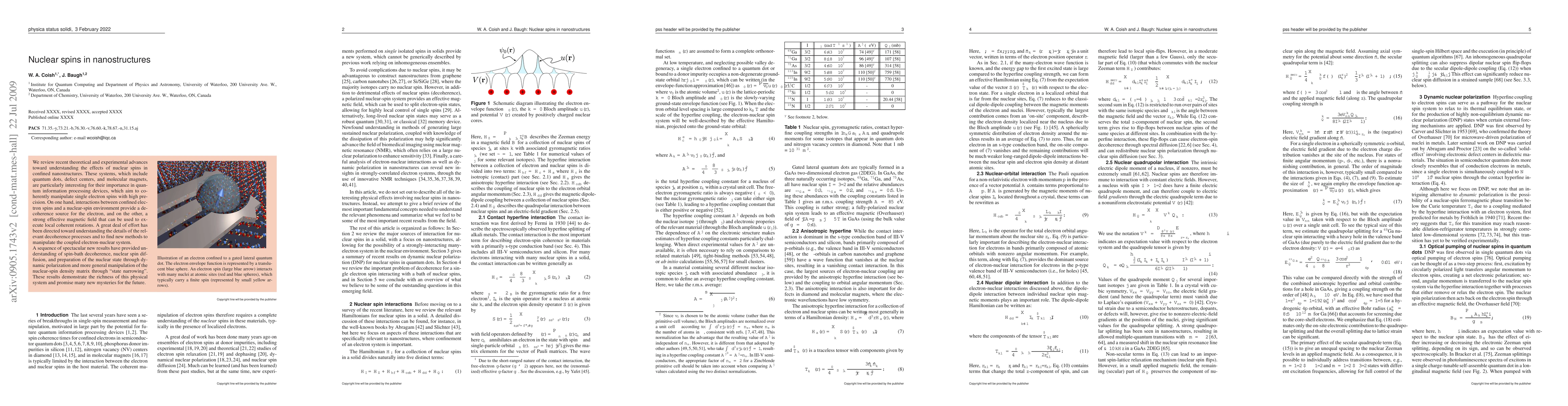 This paper reviews recent advances in understanding nuclear spins in nanostructures like quantum dots and defect centers, focusing on their dual role in both electron spin decoherence and coherent manipulation for quantum information processing. New findings on spin-bath decoherence and nuclear spin diffusion highlight the complexity and potential of these systems.