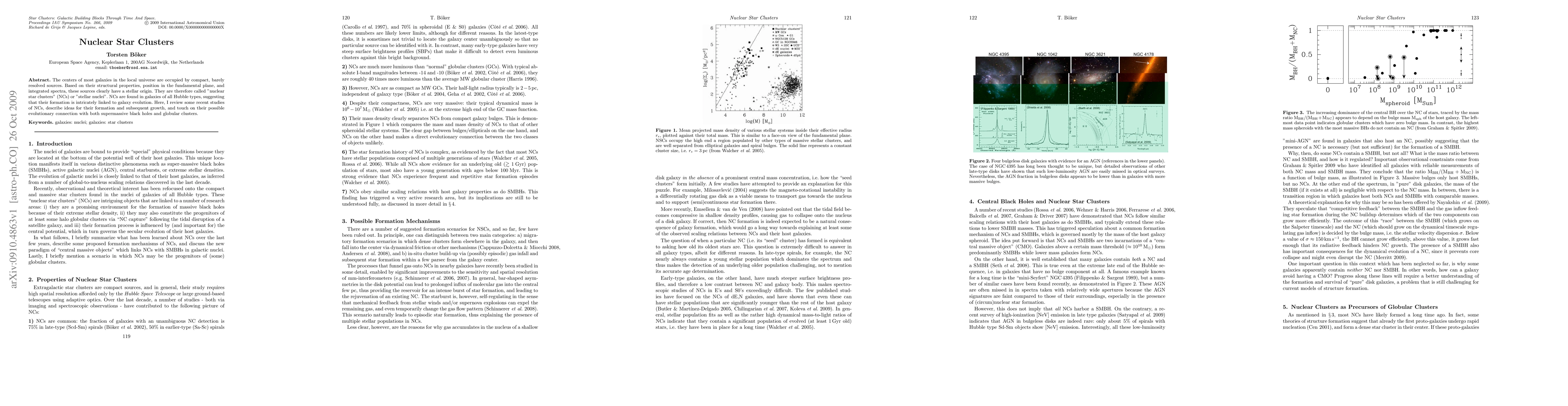 The centers of most galaxies in the local universe are occupied by compact, barely resolved sources. Based on their structural properties, position in the fundamental plane, and integrated spectra, these sources clearly have a stellar origin. They are therefore called "nuclear star clusters" (NCs) or "stellar nuclei". NCs are found in galaxies of all Hubble types, suggesting that their formation is intricately linked to galaxy evolution. Here, I review some recent studies of NCs, describe ideas for their formation and subsequent growth, and touch on their possible evolutionary connection with both supermassive black holes and globular clusters.