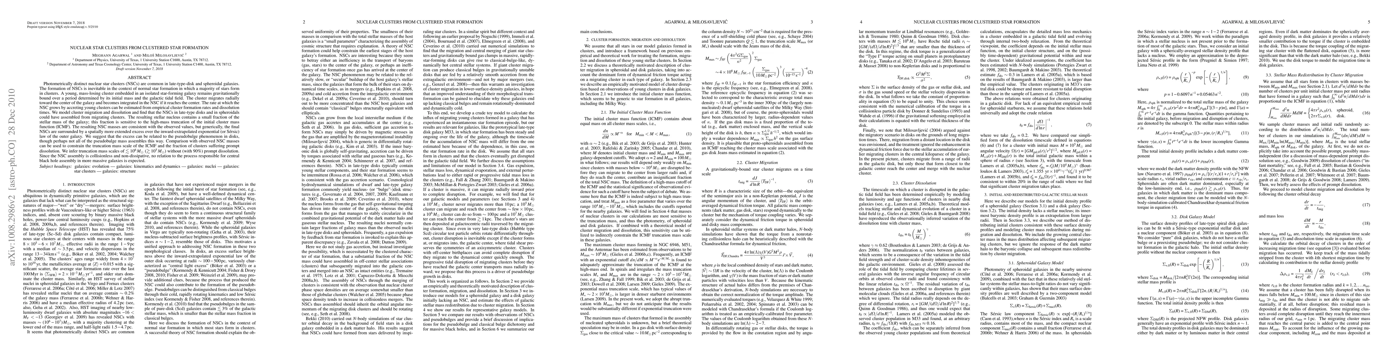 Research suggests that nuclear star clusters form from migrating young star clusters in galaxies, with their masses influenced by cluster formation rates and dissolution times, and potentially linked to the pseudobulge phenomenon in disks.